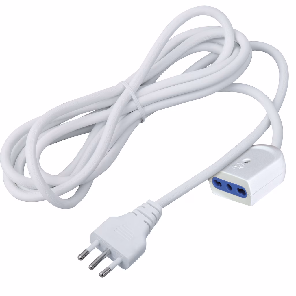 Prolunga per uso domestico lunghezza 5 metri - spina grande 16A > presa bipasso bianco