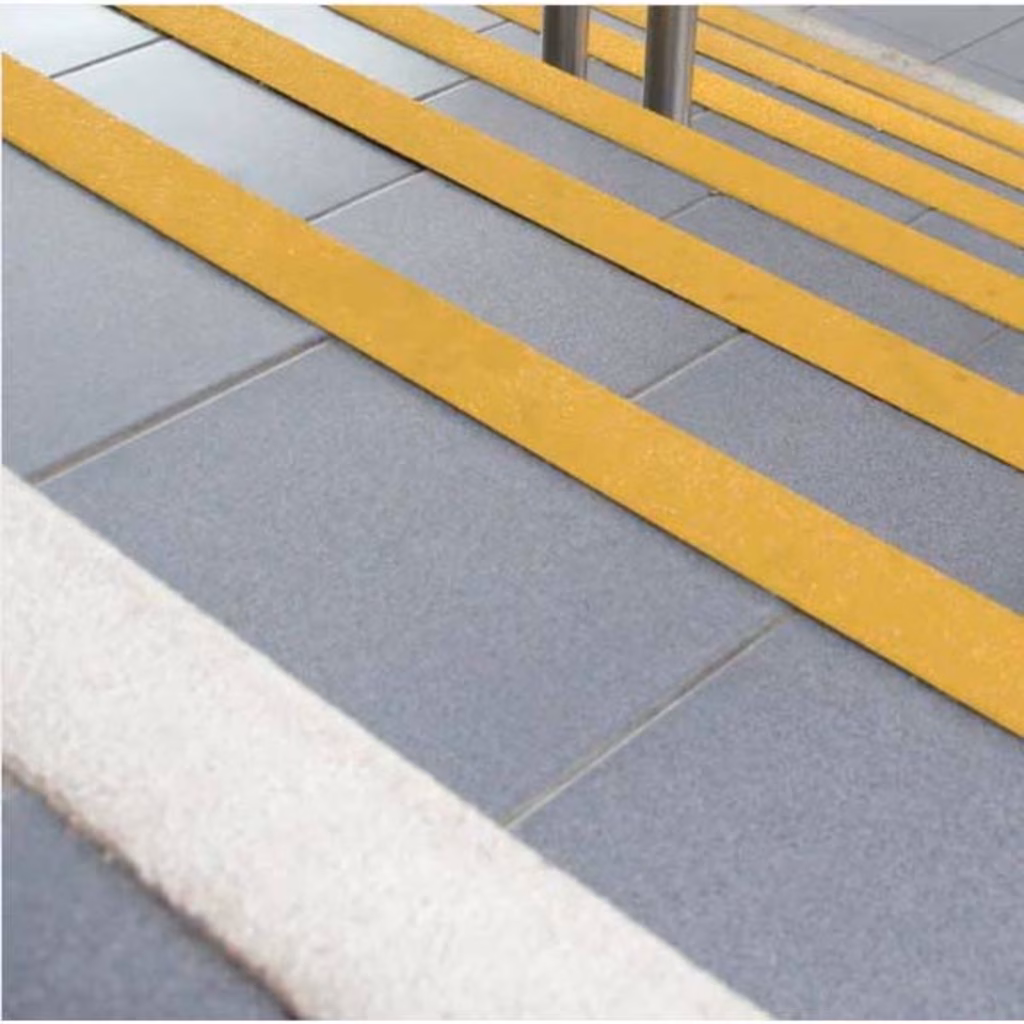 Sporgenze antiscivolo ad alta visibilità per gradini per migliorare la sicurezza delle scale - Durevole e facile da installare tanto su gradini esistenti quanto di nuova costruzione - Una superficie resistente a grani disponibile in colori vivaci che aiuta a evitare slittamenti e inciampi, oltre a essere conforme ai requisiti dell'Equality Act (DDA) - Fabbricato con bordo posteriore smussato per una maggiore sicurezza