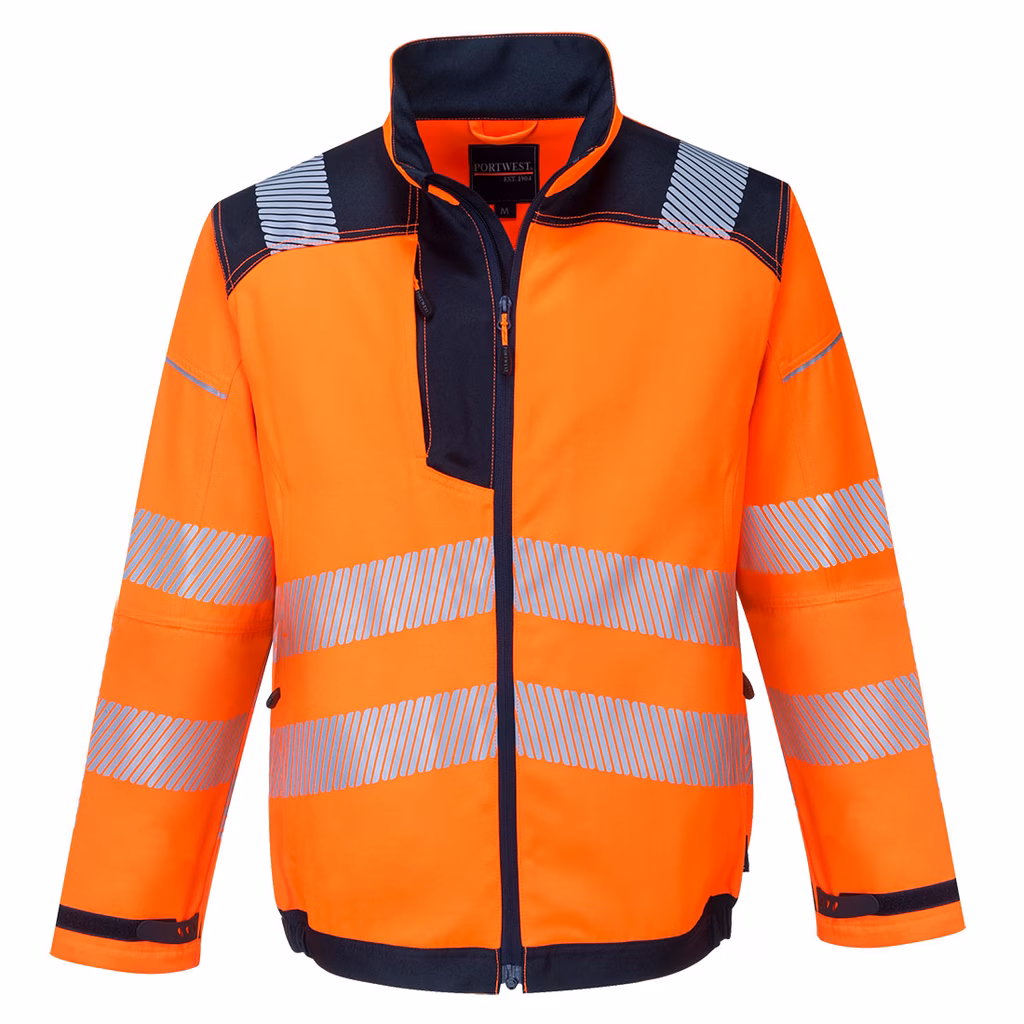 Pw3 giacca da lavoro hi-vis PORTWEST T500 colore arancione/blu navy taglia L
