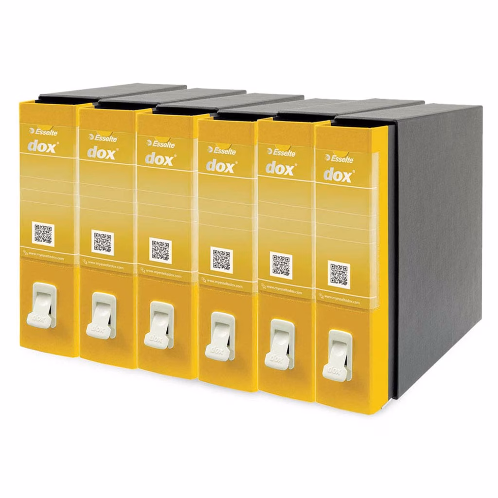Dox si trasforma in registratore intelligente grazie a myDox app: la soluzione facile e immediata per archiviare e reperire documenti - da oggi è possibile conoscere il contenuto del tuo Dox senza aprire l'archiviatore e scoprire in quale Dox è archiviato un documento che non trovi - inoltre con myDox app puoi condividere l'archivio con i colleghi e avere accesso on line tramite pc e mac - il registratore a leva Dox 2 è rivestito con carta goffrata antimpronta e rifinito con paralati metallici alla base della plancia - dotato di un meccanismo a leva in acciaio nichelato con pressino, linguetta di estrazione a scomparsa e portaetichette con etichetta reversibile - la custodia è rivestita con carta nera goffrata trattata antimpronta con interno nero - ogni Dox possiede un codice qr univoco (stampato direttamente sull'etichetta o incluso al suo interno nel volantino) - il volantino all'interno contiene inoltre 3 semplici indicazioni per come scaricare la app su app store e google play