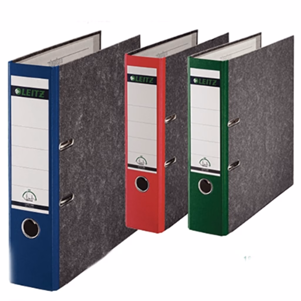 Struttura in cartone rivestito con carta goffrata marmorizzata (certificato Der Blaue Angel e FSC®) - rinforzo metallico alla base - dorso con etichetta scrivibile - occhiello di estrazione e meccanismo a leva in acciaio nichelato - meccanismo di chiusura Rado per assicurare il massimo della stabilità - esclusivo meccanismo brevettato che si apre a 180° per un'apertura più larga del 50% e un'archiviazione del 20% più rapida