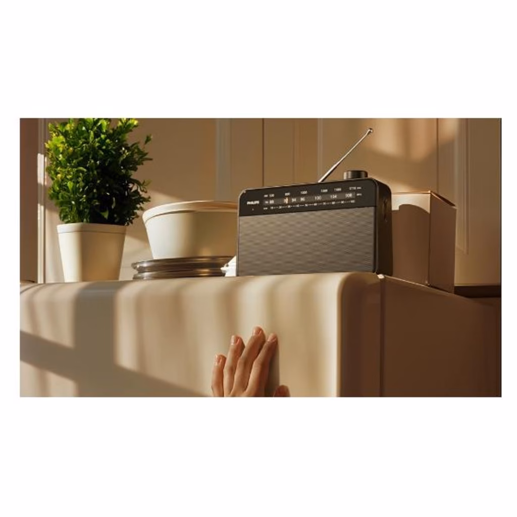 Ovunque desideri ascoltare i contenuti, potrai portare la radio con te. Collega la radio a una presa a muro o inserisci due batterie D ed esci. È perfetta per farti compagnia mentre sorseggi un bicchiere di vino sul terrazzo o per un picnic in giardino.