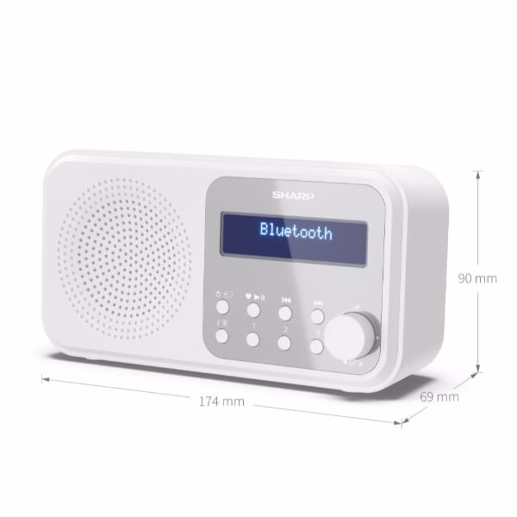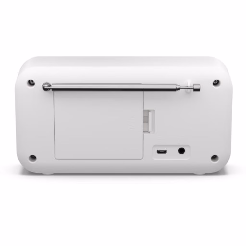 Radio DAB+/DAB/FM compatta e portatile con streaming audio senza fili Bluetooth e alimentazione tramite USB o batteria. Semplice, veloce e flessibile: Usa il Bluetooth per trasmettere in modo wireless l audio da altri dispositivi, come il tuo smartphone o il tablet. Scansiona automaticamente l intervallo di frequenza e aggiunge le stazioni trovate. Sono disponibili due allarmi indipendenti, che consentono di attivare la tua stazione radio preferita o sintonizzare automaticamente una trasmissione programmata. Testato e approvato per garantire che la radio sia pronta per il futuro. La radio usa il segnale di trasmissione per aggiornare automaticamente data e ora. 7 lingue di sistema: Inglese, tedesco, spagnolo, francese, italiano, olandese e polacco. Memorizza fino a 40 singole stazioni radio (20 DAB, 20 FM).