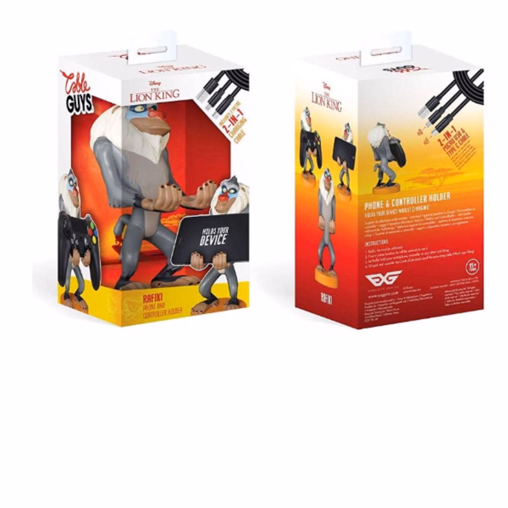 Supporto da tavolo per Smartphone/Joypad RAFIKI Il Re Leone.  Usa i tuoi eroi preferiti dei videogame per appoggiare il joystick o il telefono oppure la cuffia mentre lavori. Include 2mt Micro USB Charging Cable! Tutti i Cable Guys hanno licenza ufficiale e sono compatibili con i controller Playstation, Xbox e la maggior parte degli Smartphone.