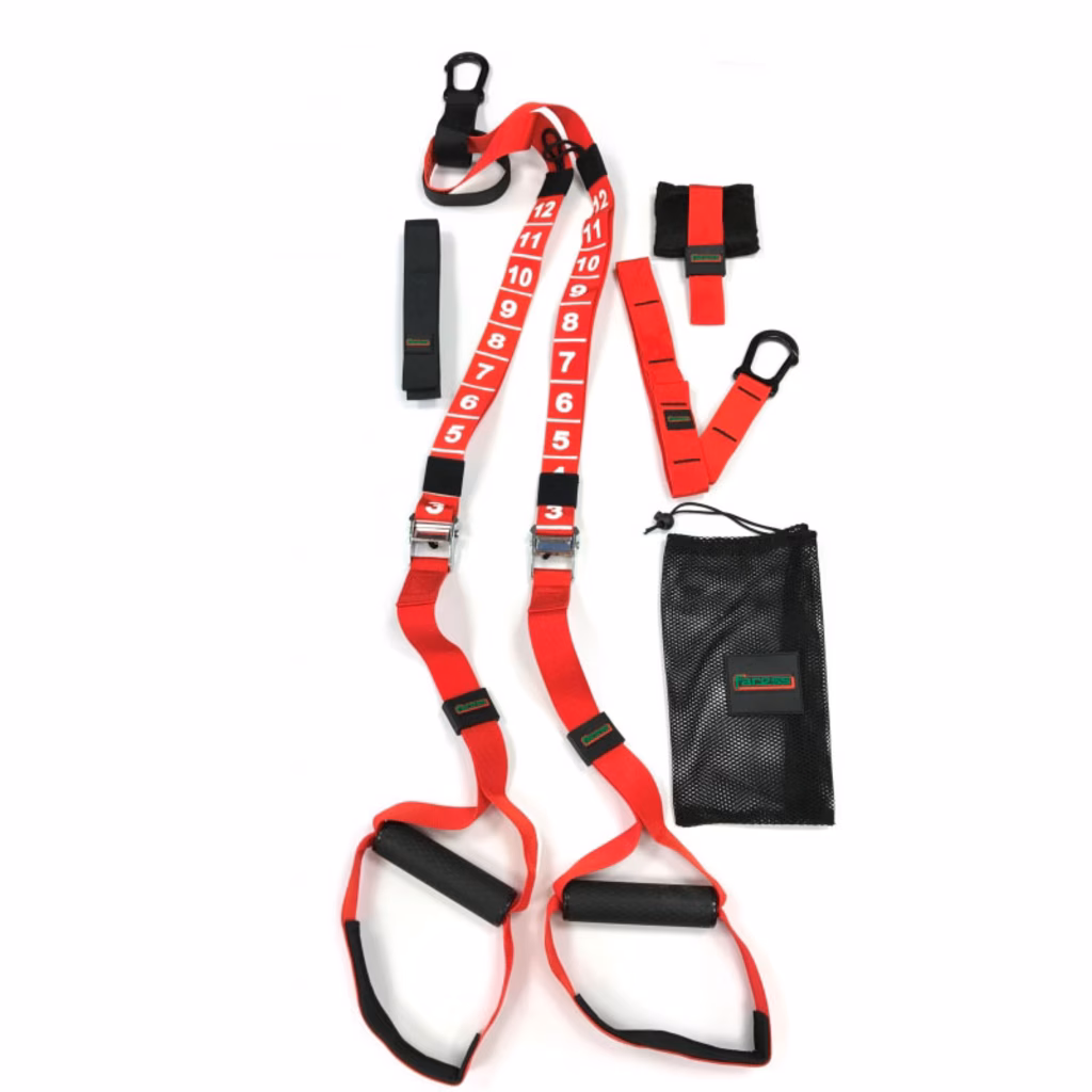 Il TRX è l'attrezzo indispensabile per l'allenamento a corpo libero e adattabile a qualsiasi luogo di allenamento. Robusto e sicuro è corredato di bloccaggi di sicurezza in metallo. E' possibile ancorarlo alle porte grazie al particolare accessorio di aggancio.Testato per un peso massimo utente di 480 Kg.