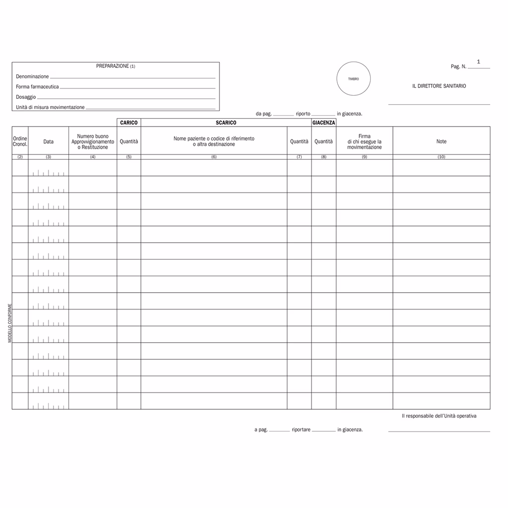 Registro Carico-Scarico Stupefacenti perUnità Operative 100pg num 24x31,5cm
