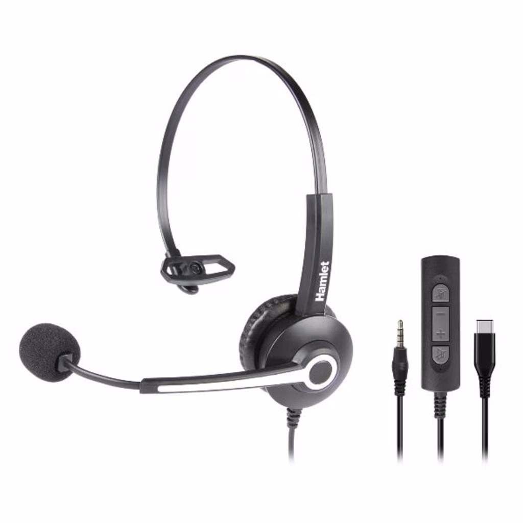 Hamlet Renova Headset modello CJM è una cuffia professionale monoaurale con microfono regolabile che consente la comunicazione a mani libere. La doppia modalità di connessione sia con jack audio da 3,5 mm che connettore USB-C permette l'utilizzo con Computer, Notebook, Smartphone e Tablet. È la soluzione ideale per videoconferenze e chiamate vocali via internet tramite applicazioni come Skype , Zoom, NetMeeting. Renova Headset CJM ha un design leggero e confortevole grazie all'archetto regolabile e al morbido auricolare in similpelle imbottito. Il microfono omnidirezionale, dotato di riduzione dei rumori di fondo, offre una buona qualità della voce e può essere ruotato di 270 gradi per l'utilizzo a sinistra o a destra. Sul cavo è presente il telecomando con il controllo del volume e funzione Mute. L'installazione è completamente Plug-and-Play, è sufficiente collegare il cavo al computer senza la necessità di installare software aggiuntivo.