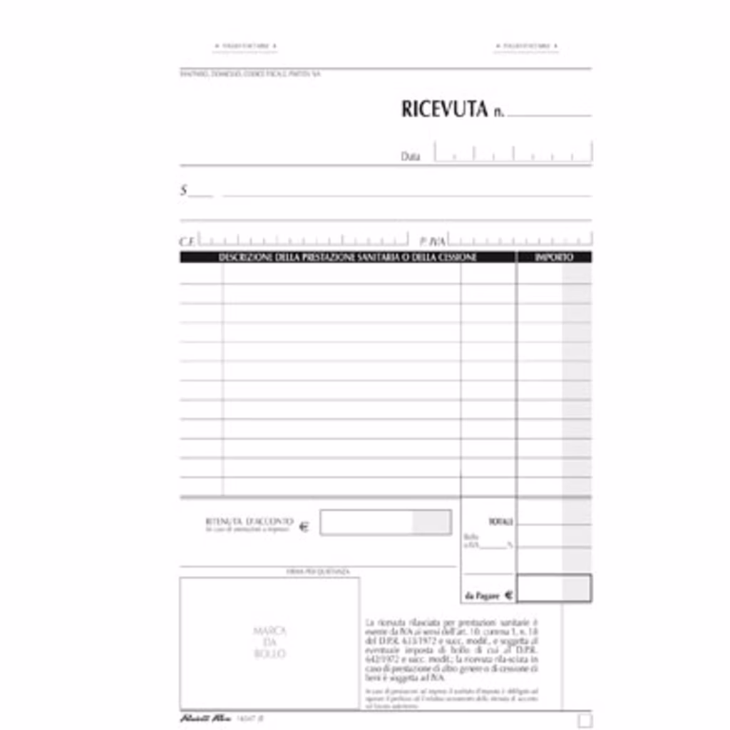 Ricevute sanitarie - blocco di 50x2 fogli in carta chimica (autoricalcante) - formato cm 14,8x23