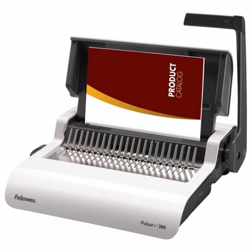 La rilegatrice Pulsar+ 300 è progettata per uso regolare nei piccoli uffici. Perfora fino a 20 fogli contemporaneamente con una capacità complessiva di rilegatura pari a 300 fogli con un dorso del diametro massimo di mm 38. Rilegatura facile ed immediata; dotata di margine laterale regolabile per allineare i documenti in modo accurato e una guida di misurazione dei dorsi e dei documenti che permette di scegliere velocemente i consumabili giusti. Il cassetto degli sfridi si apre da solo quando è pieno, eliminando il rischio di inceppare i punzoni. Pulsar+ 300 include uno starter kit per rilegare 10 documenti. Fornita con 2 anni di garanzia.