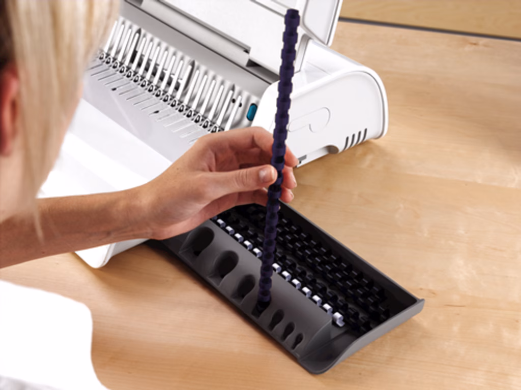 La rilegatrice elettrica a dorsi plastici Pulsar-E 300 è progettata per uso regolare in piccoli uffici. Perfora fino a 15 fogli contemporaneamente ed ha una capacità di rilegatura di 300 fogli con dorsi del diametro massimo di 38mm. Pulsar-E 300 è dotata di caratteristiche tecniche che permettono un facile ed efficiente processo di rilegatura, tra cui la guida laterale regolabile per allineare correttamente i fogli e un cassetto portaoggetti dotato di misuratore dei dorsi e dei documenti per scegliere velocemente i consumabili giusti. Il cassetto degli sfridi si apre automaticamente quando è pieno per evitare inceppamenti. Starter kit per 10 documenti incluso e garanzia di 2 anni.