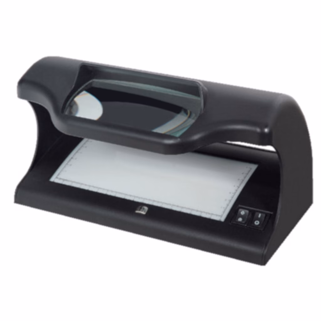 Rilevatore manuale (universale) di banconote false, progettato per rilevare l'autenticità di Euro ed altre valute (dollari,sterline etc), oltre che di carte di credito, francobolli, documenti d'identità etc, fino a formato A4, anche alla luce del giorno. 3 distinti controlli: - UV, presenza di fibre riflettenti (2 lampade UV da 6W) - WM, presenza della filigrana (lampada bianca a led 6W) - MG, rilevazione inchiostro magnetico (con allarme sonoro) Lente di ingrandimento per controllo dettagliato.