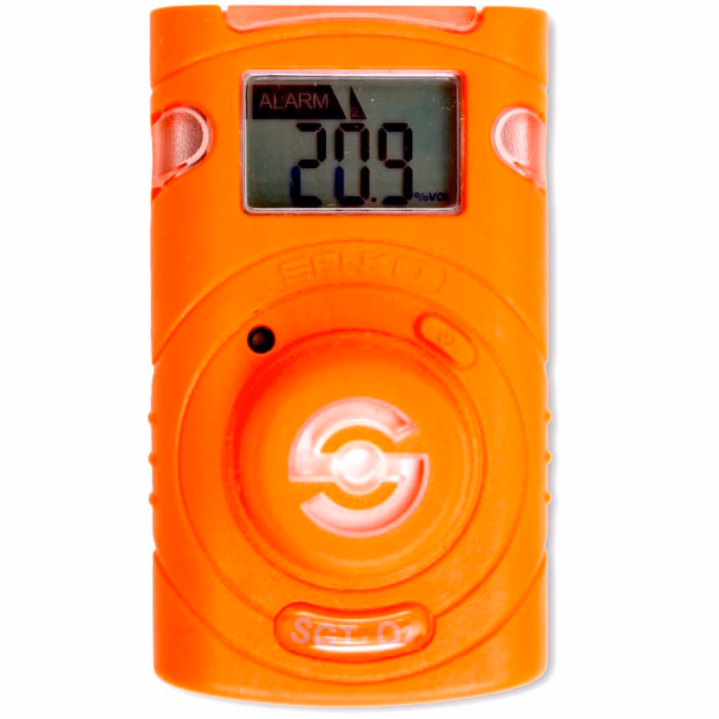Rilevatore monogas portatile SGT CO colore arancione, 2 anni di autonomia senza necessità di sostituire il sensore, lettura in tempo reale per il rilevamento di uno dei seguenti gas:ossigeno O2, monossido di carbonio CO, solfuro di Idrogeno H2S, biossido di zolfo SO2, diidrogeno H2, ammoniaca NH3, chermo LCD di facile lettura - menù integrato per la consultazione di informazioni, include un software per la configurazione dei valori del dispositivo e la programmazione degli allarmi, notifica di allerta attraverso luci rosse, vibrazione e suono, certificato ATEX per lavori in ambienti esplosivi, possibilità di scaricare i dati degli ultimi 30 allarmi, dispositivo robusto e resistente a polvere e sostanze liquide IP67, colore arancione per una rapida identificazione visiva del dispositivo