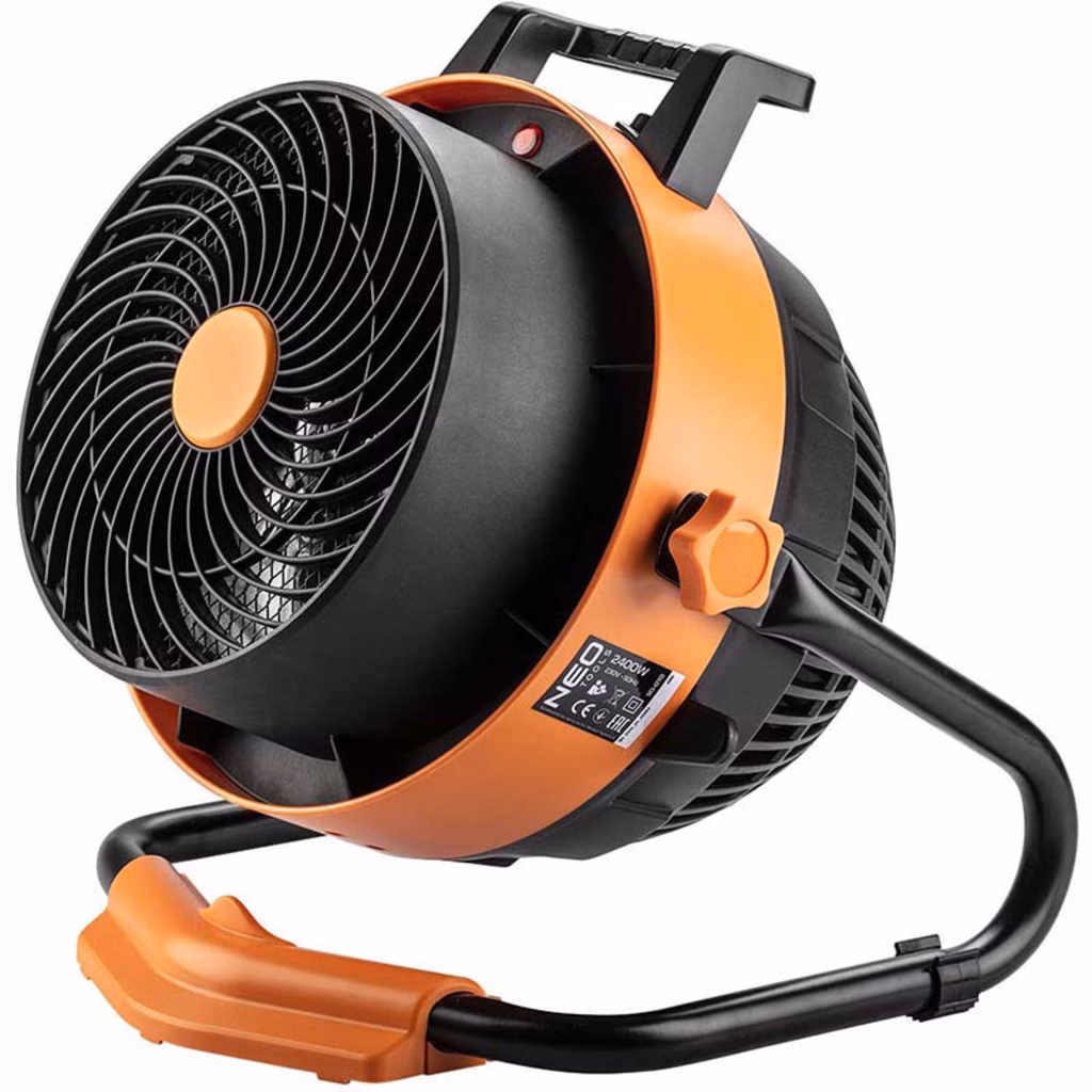 Riscaldatore con ventilatore industriale, 2 in 1, 2400W, elemento riscaldante a molla, rapido, elemento riscaldante: molla; modalità di controllo: manuale; termostato regolabile con interruttore; angolo di uscita aria regolabile fino al 90%; protezione contro il surriscaldamento; struttura forte e durevole; impugnatura isolata e sicura