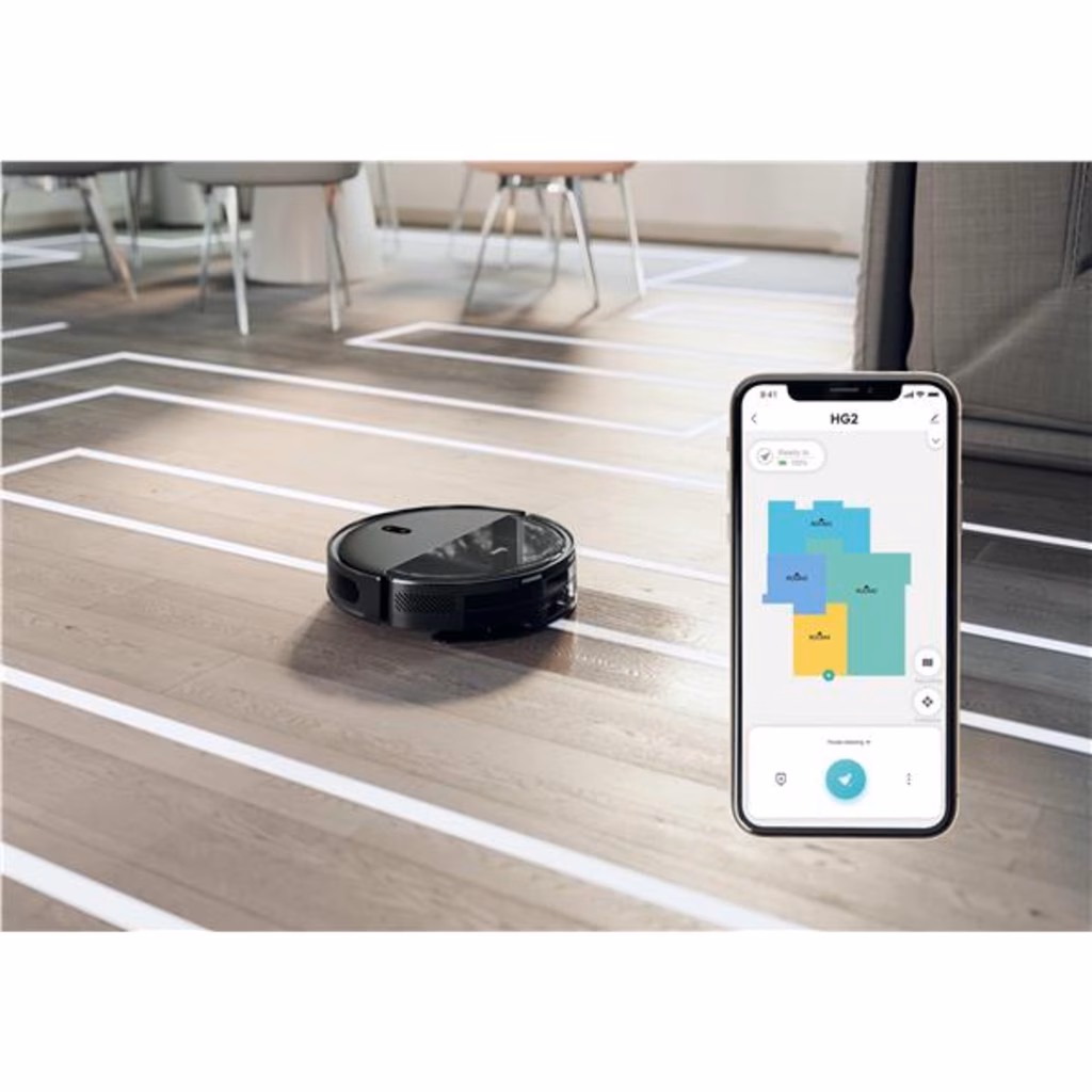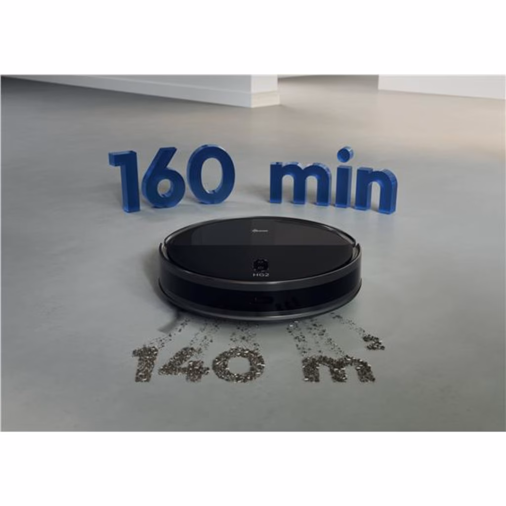 HG2 Turbo SlimDesign ultrafino, sucção potenteSucção potenteAspiração eficaz e autónoma até 5000 Pa de sucção para limpar pó e detritos.Limpeza precisaA navegação avançada Point-Laser realiza scan e atualiza o layout da sua casa para uma limpeza precisa.Limpe debaixo dos móveisAlcance e limpe até as áreas mais difíceis, inclusive debaixo dos móveis, devido ao design ultrafino: apenas 8,3 cm de altura.Limpeza eficaz de uma só vezAspiração potente e limpeza eficaz ao mesmo tempo.Sessões de limpeza mais longasBateria avançada e gestão de energia para limpar até 160 minutos* com uma única carga. *Com base em teste interno utilizando o modo [Baixo/Mín.]Mopa ajustávelLimpeza eficaz em diferentes tipos de pavimentos devido a três níveis diferentes de libertação de água que podem ser controlados pela App HG Robots.Mapa inicial da sua casa personalizadoPersonalize totalmente o mapa da sua casa dividindo ou mesclando divisões, nomeando-os e adicionando áreas proibidas ou paredes virtuais em locais específicos onde prefere que o robot não limpe. Com a função de mapeamento rápido, pode criar um mapa inicial da sua casa em apenas alguns minutos.Cronogramas de limpeza personalizáveisPrograme rotinas de limpeza personalizadas para cada divisão por meio da App HG Robots: defina horário e dia específicos, nível de potência de aspiração preferido e ordem de limpeza das divisões.App dedicada para robot HGPersonalize o mapa da casa e as sessões de limpeza com a App HG Robots: horários regulares, configurações de limpeza, áreas proibidas tudo na palma da sua mão.