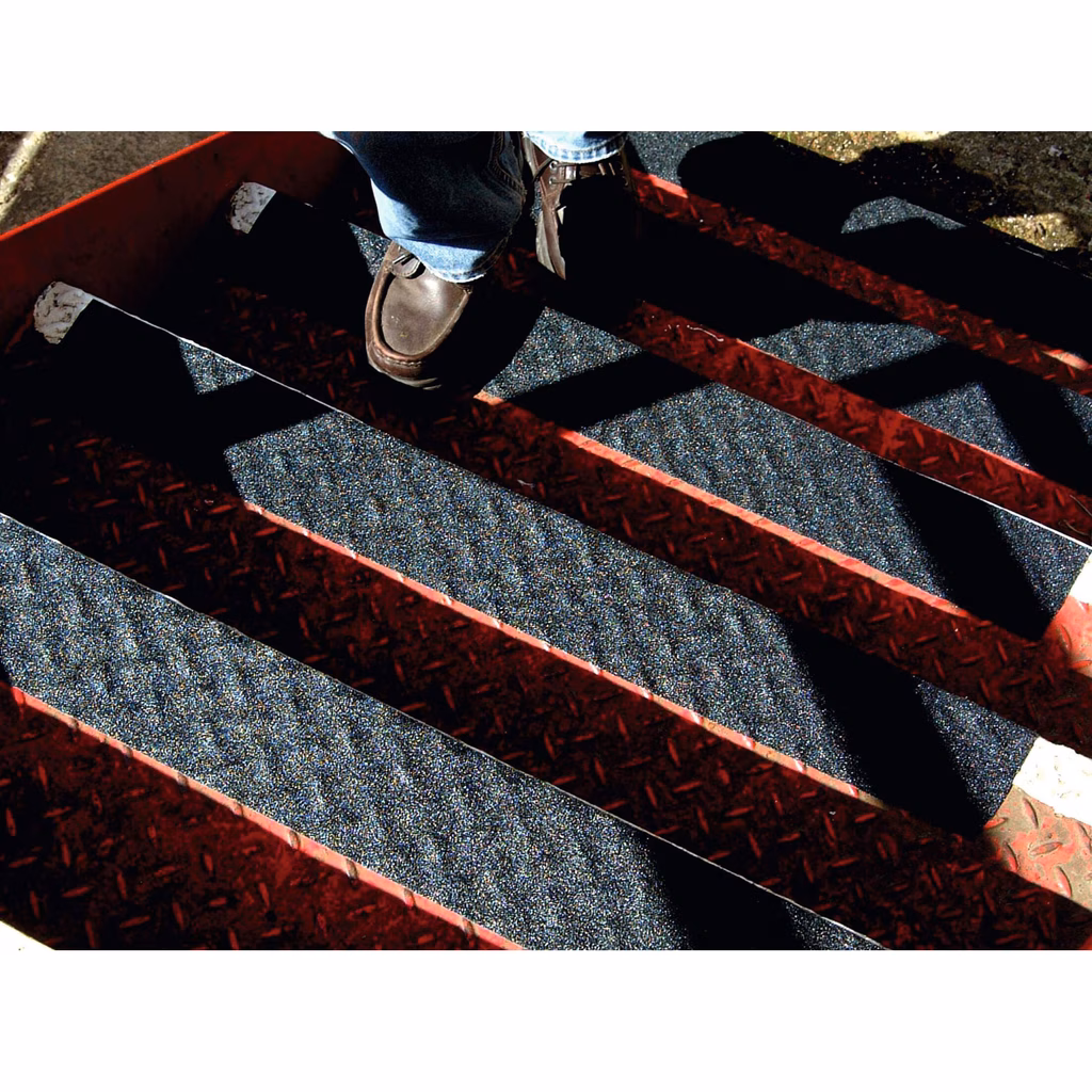 Nastri antiscivolo adesivi per migliorare la sicurezza di scalini e rampe - adatto per l'uso in ambienti interni o esterni protetti - il rivestimento antiscivolo permette anche di proteggere la superficie di rampe e gradini dall'usura - può essere applicato su scale, rampe, pavimenti industriali e mezzi da lavoro - resistenza allo scivolamento R13 e conforme alla normativa DIN 51130 e dotato di scanalature per una facile rimozione -Il nastro con supporto in alluminio si adatta alle superfici irregolari ed è idoneo a lamine diamantate e lastre mandorlate - dimensione (HxL) mm 50x15 m
