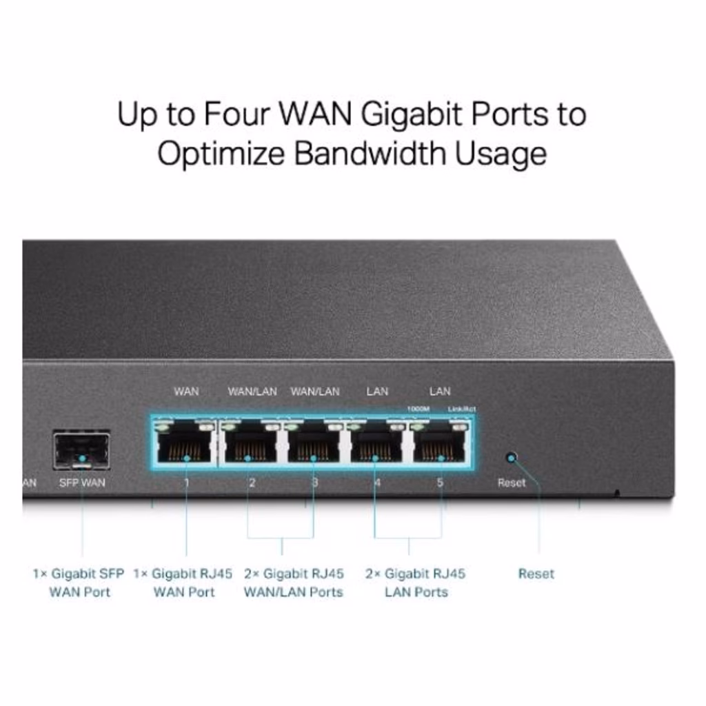 Fino a 4 porte WAN - 1 porta Gigabit SFP WAN, 1 porte Gigabit RJ45 WAN e 2 porte Gigabit WAN/LAN.