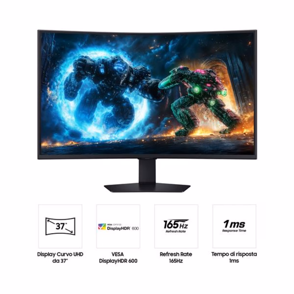 Samsung Monitor Gaming Odyssey G7 - G75F da 37" UHD CurvoAzioni di gioco fluide, senza interruzioni AMD FreeSync Premium Pro Ottieni una riproduzione incredibilmente fluida durante le azioni più rapide dei tuoi giochi grazie alla frequenza di aggiornamento variabile (VRR). AMD FreeSync Premium Pro sincronizza la GPU e il pannello riducendo le intermittenze, il ritardo dello schermo e leffetto tearing, per affrontare nel modo migliore anche sessioni di gioco intense. Collegamento automatico in un attimo Auto Source Switch+ Con Auto Source Switch+ potrai iniziare subito a giocare senza più attese. Il monitor rileva subito se i dispositivi collegati sono accesi e attiva istantaneamente il segnale della nuova sorgente senza bisogno di trovare lingresso giusto ogni volta. La soluzione ideale per un'esperienza immersiva CoreSync & CoreLighting+ Crea l'atmosfera giusta per ogni gioco. Grazie alla tecnologia CoreSync, luniverso di gioco prenderà vita con 16,7 milioni di colori. Con CoreLighting+ potrai creare un'atmosfera unica in cui immergerti completamente, con colori mai così realistici. Vinci ogni partita senza rinunciare alla comodità Supporto ergonomico Il trionfo è a portata di mano. Inclina e regola il monitor per avvistare fino allultimo nemico.Azioni di gioco fluide, senza interruzioniAMD FreeSync Premium Pro