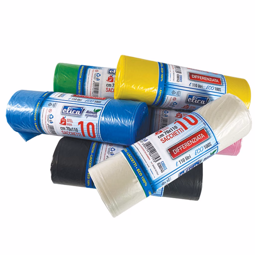 Sacchetto rifiuti ELICA senza maniglie cm 70x110 110 litri 21 µ colore nero
