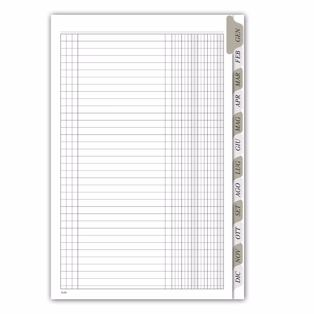 Registro rubricato gennaio/dicembre con legatura a spirale - copertina semirigida - 10 pagine a mese - formato A4 cm 21x29,7