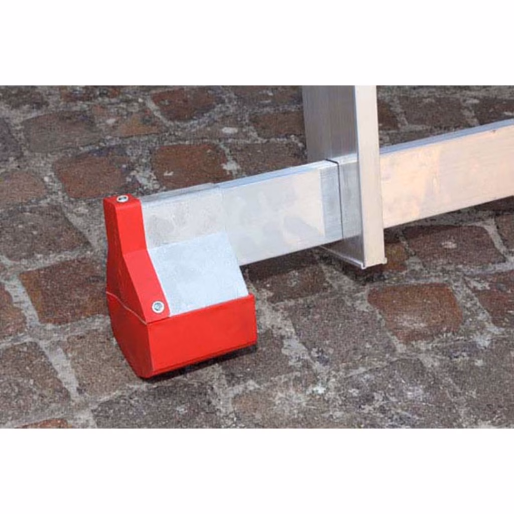 Disponibile da 7+8+8 a 14+15+15 gradini - altezza massima di lavoro 4,5 m - possibilità di utilizzo in appoggio come scala singola, zoppa o a forbice - costruita secondo le norme EN131 e EN131.2 2018, supera i test di resistenza di oltre 50.000 cicli di lavoro - testata dal Politecnico di Milano, ogni scala è dotata del certificato di conformità e collaudo - Gradini anteriori da 8 cm e pioli posteriori da 3 cm ribattuti per uso intensivo - profili a sezione rinforzata 2,5 mm - stabilizzatori ergonomici maggiorati in PVC antiscivolo - larghi montanti in alluminio - fornita di cinghia per ancoraggio in linea con i requisiti del D.L.81 - le cinghie di sicurezza per ancoraggio fissano la scala aumentando ulteriormente la stabilità.