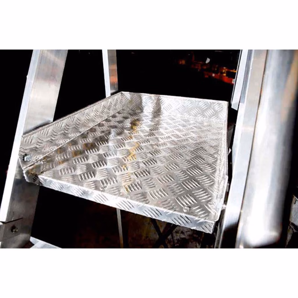 Disponibile da 4 a 15 gradini - Altezza massima di lavoro 5,4 m - Costruita in base alla norma EN 131.7, supera il test di ribaltamento laterale rendendo la piattaforma sicura per lavorare - Supera i test di resistenza di oltre 50.000 cicli di lavoro - Testata dal Politecnico di Milano, ogni scala è dotata del certificato di conformità e collaudo - Il comodo piano di lavoro antiscivolo in alluminio mandorlato (52x62) dona all'operatore ampio spazio di manovra - Il corrimano laterale in tubolare di alluminio sagomato consente all'operatore una presa sicura - La croce stabilizzatrice nell'asse posteriore migliora la stabilità della scala - COMFORT: Comodi gradini da 15 cm, L'inclinazione della scala di 60° rende la salita e la discesa agevole, Spostamento comodo e rapido grazie alle ruote del sistema Sicur-Stop.