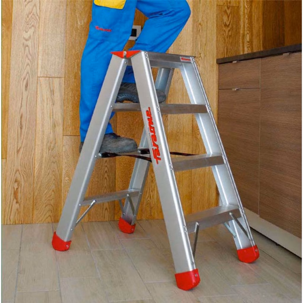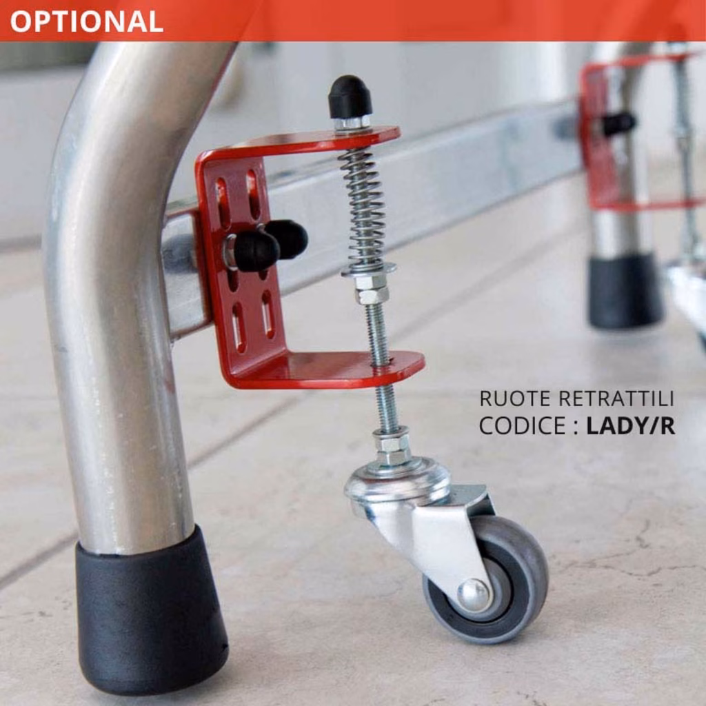 Disponibile da 2+2 a 12+12 gradini - Altezza massima di lavoro 4,0 m - Supera i test di resistenza di oltre 50.000 cicli di lavoro della norma EN 131-2 - Ogni scala è dotata del certificato di conformità e collaudo - Fissaggio dei gradini con tecnologia aeronautica garantiti 10 anni che allungano di almeno il doppio la vita della scala - Tamponi antiscivolo maggiorati aderiscono bene a diversi tipi di pavimentazione - Larghi montanti in alluminio anodizzato - COMFORT: Profondità gradino antiscivolo da 8 cm, Chiusa occupa poco spazio (16 cm), comoda da riporre in ogni angolo.