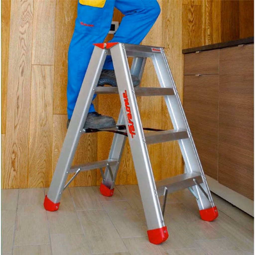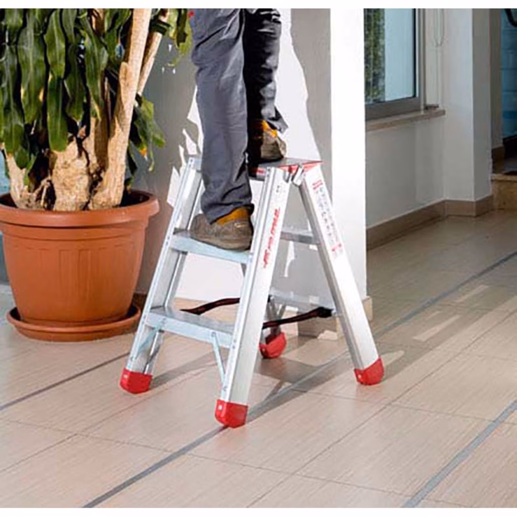 Disponibile da 2+2 a 12+12 gradini - Altezza massima di lavoro 4,0 m - Supera i test di resistenza di oltre 50.000 cicli di lavoro della norma EN 131-2 - Ogni scala è dotata del certificato di conformità e collaudo - Fissaggio dei gradini con tecnologia aeronautica garantiti 10 anni che allungano di almeno il doppio la vita della scala - Tamponi antiscivolo maggiorati aderiscono bene a diversi tipi di pavimentazione - Larghi montanti in alluminio anodizzato - COMFORT: Profondità gradino antiscivolo da 8 cm, Chiusa occupa poco spazio (16 cm), comoda da riporre in ogni angolo.