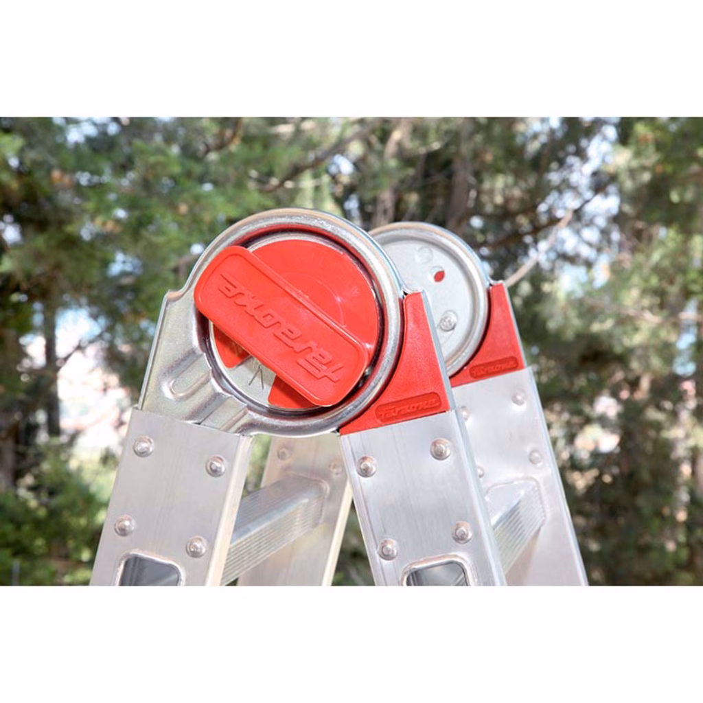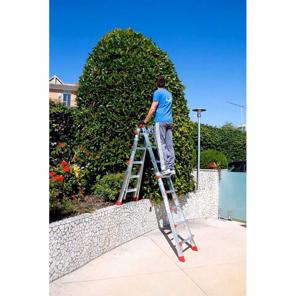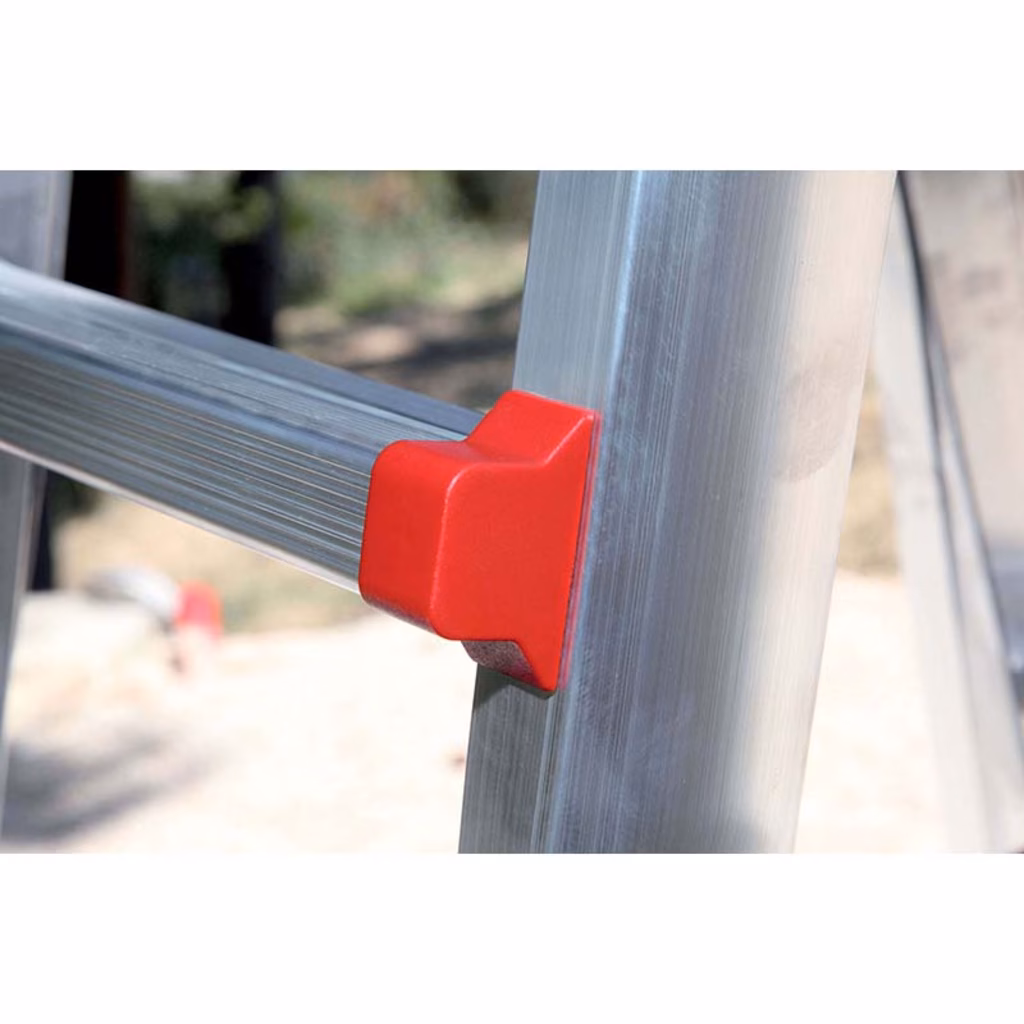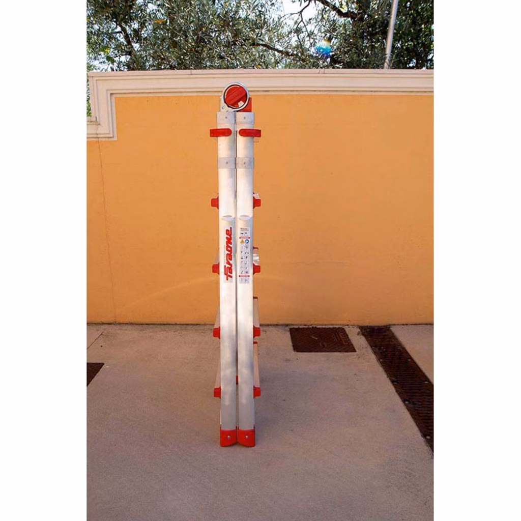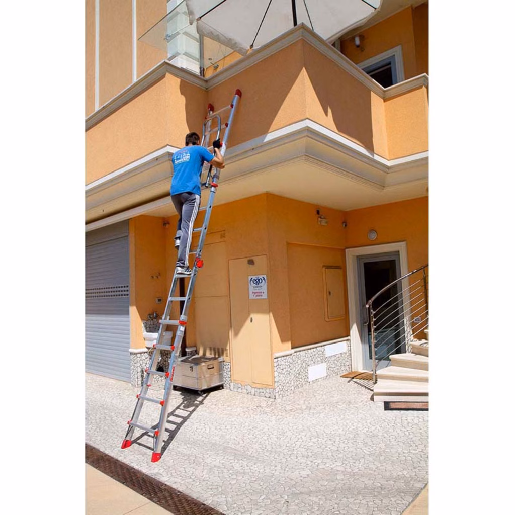 TELES è la scala telescopica professionale che garantisce 4 modalità di utilizzo: estesa, a forbice, zoppa o separata in 3 scale differenti.Disponibile da 8+8 e da 10+10 gradini - Altezza massima di lavoro 4,7 m - Rispetta i criteri di sicurezza sul lavoro del D.L. 81 - Supera i test di resistenza di oltre 50.000 cicli di lavoro della norma EN 131.2 - Ogni scala è dotata del certificato di conformità e collaudo - COMFORT: Cerniera programmabile in 3 modalità, Chiusa occupa poco spazio (21 cm) ed è agevole per gli spostamenti, Possibilità di aggiungere il bracciolo con gradino da 15 cm per una presa più sicura e per aumentare l'altezza di lavoro di 60 cm. Agganciabile a tutti i gradini.