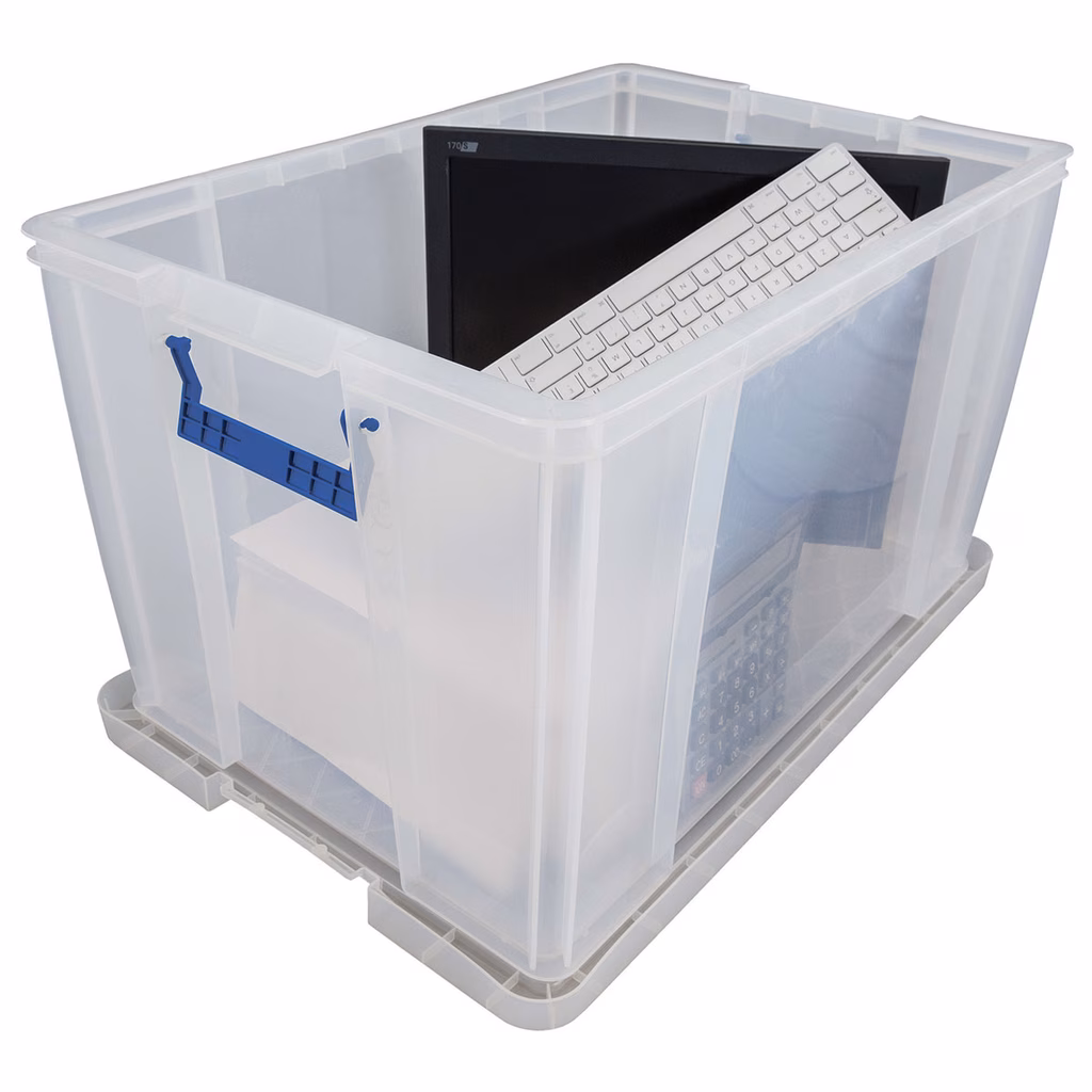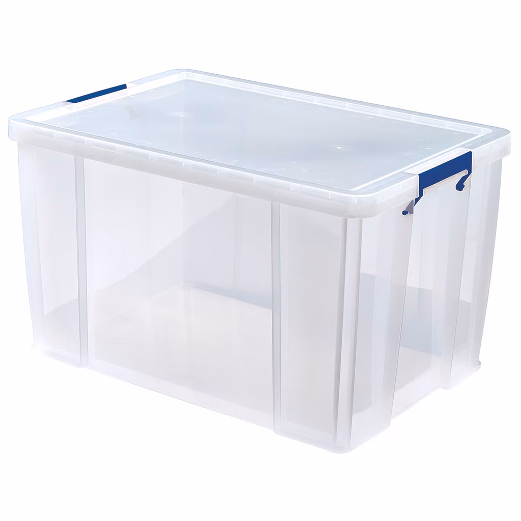 Robusta soluzione d'archivio in plastica per la casa ed il lavoro - maniglia di chiusura integrata nel lato della scatola.Lati ed angoli doppiamente rinforzati - base rinforzata - coperchio incassato per maggiore stabilità - contenuto protetto da umidità e polvere - in polipropilene privo di BPA - certificata idonea per contenere cibo - completamente riciclabile