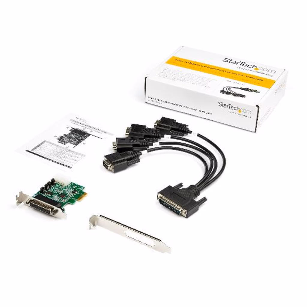 Con questa scheda adattatore seriale PCI Express RS232 è possibile aggiungere quattro porte seriali RS232 (DB9) a un computer tramite uno slot PCI Express (PCIe), consentendo l'interazione con dispositivi seriali come lettori per schede, stampanti, tastierini PIN e modem, a velocità fino a 921,6 Kbps.