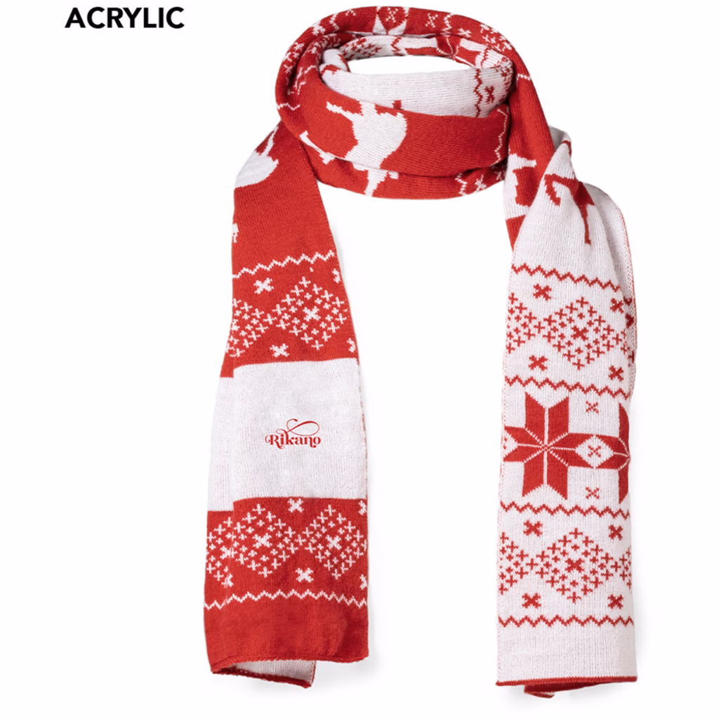 Divertente e calda sciarpa con motivi natalizi - un regalo originale da indossare con stile a Natale - realizzata in morbido poliestere acrilico - misura cm 160x30 - peso g 150 - presentata in un sacchetto individuale riciclato