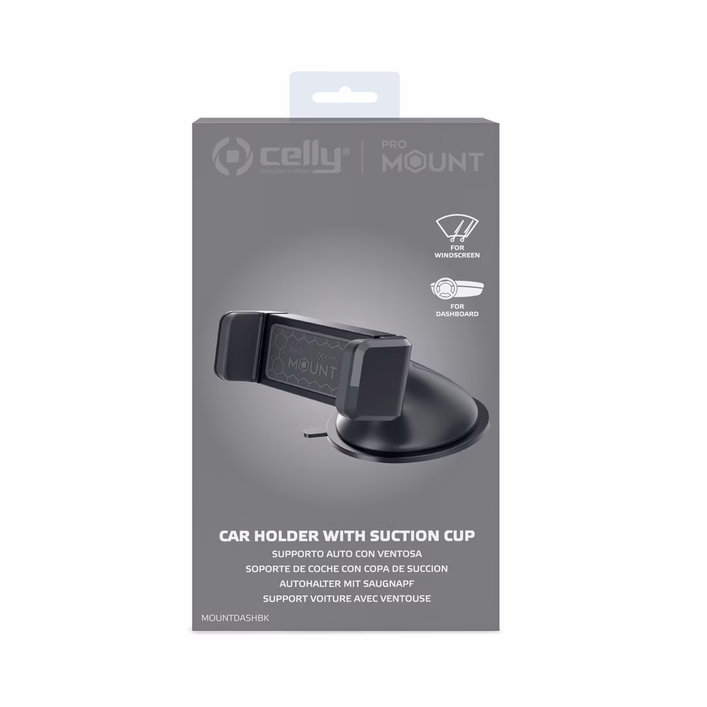 MOUNTDASH è il supporto auto universale per il tuo smartphone dotato di ventosa per l'utilizzo su parabrezza, cruscotto o scrivania.