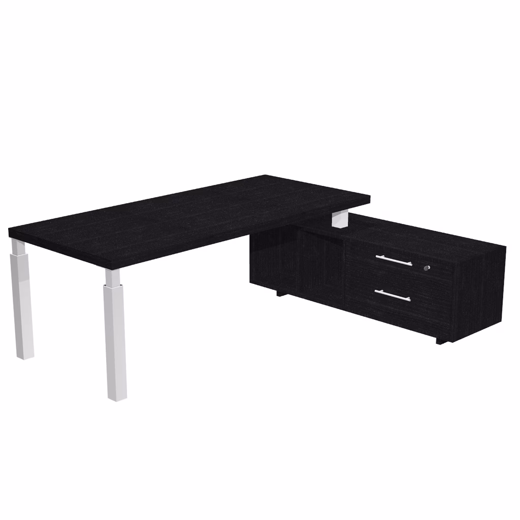 Scrivania direzionale con mobile STYLE cm 195x170xH74 strutt.bianco luc. finitura nero venato frass.