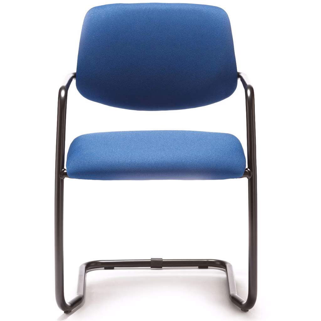 Sedia visitatore con telaio a slitta in acciaio verniciato nero. Sedile e schienale imbottiti e rivestiti con tessuto ignifugo Bond (test usura 100.000 cicli Martindale) colore blu - In fase di omologazione in classe 1IM.- Garanzia 5 anni.