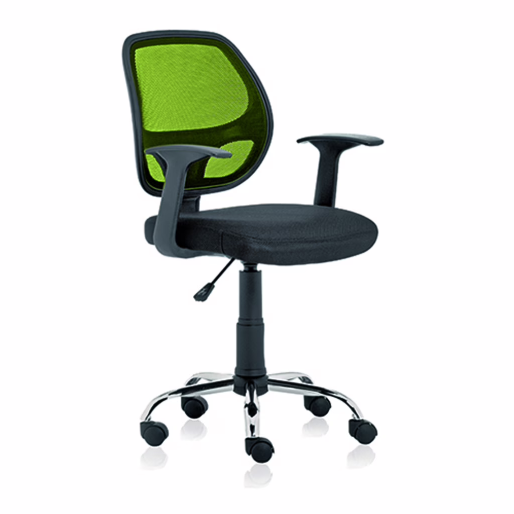 Una sedia operativa la cui immagine è fortemente caratterizzata dalle reti in 3 colori - Le forme dello schienale e del supporto strutturale, il bracciolo proteso in avanti e le soluzioni cromatiche creano un effetto interessante e innovativo - Sedia dattilo girevole regolabile in altezza, solo girevole - Schienale con struttura in polipropilene, e rete autoportante colore verde - Interno sedile in multistrato di legno - Imbottitura sedile in poliuretano espanso rivestito con tessuto colore nero - Braccioli fissi in polipropilene - Base a 5 razze in tubolare d'acciaio cromato su ruote pivotanti - Garanzia 2 anni
