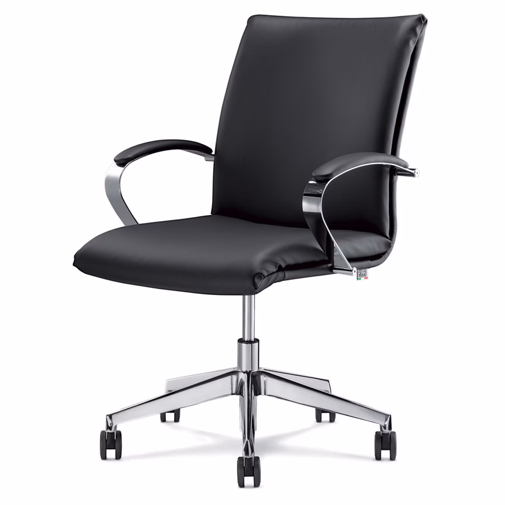 Sedia direzionale EQUIPE schienale medio senza oscillante ecopelle nera