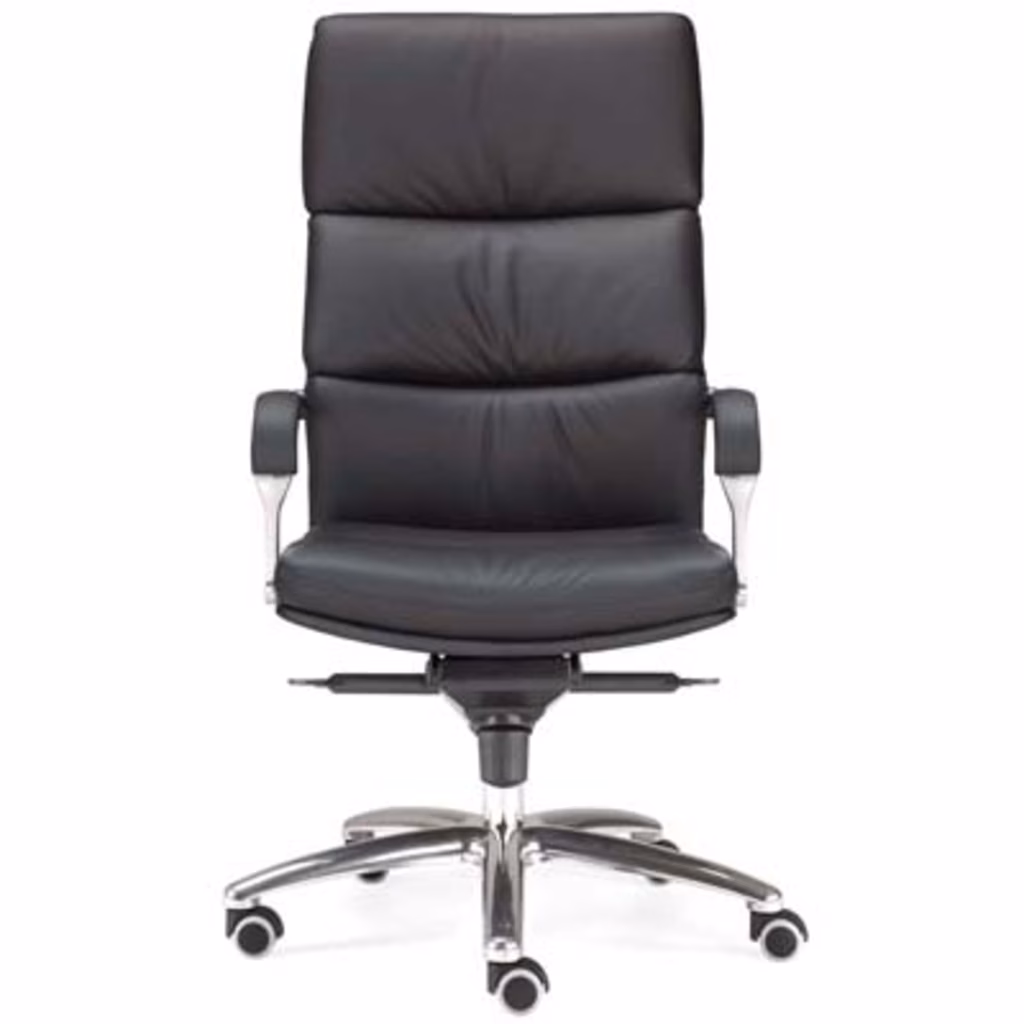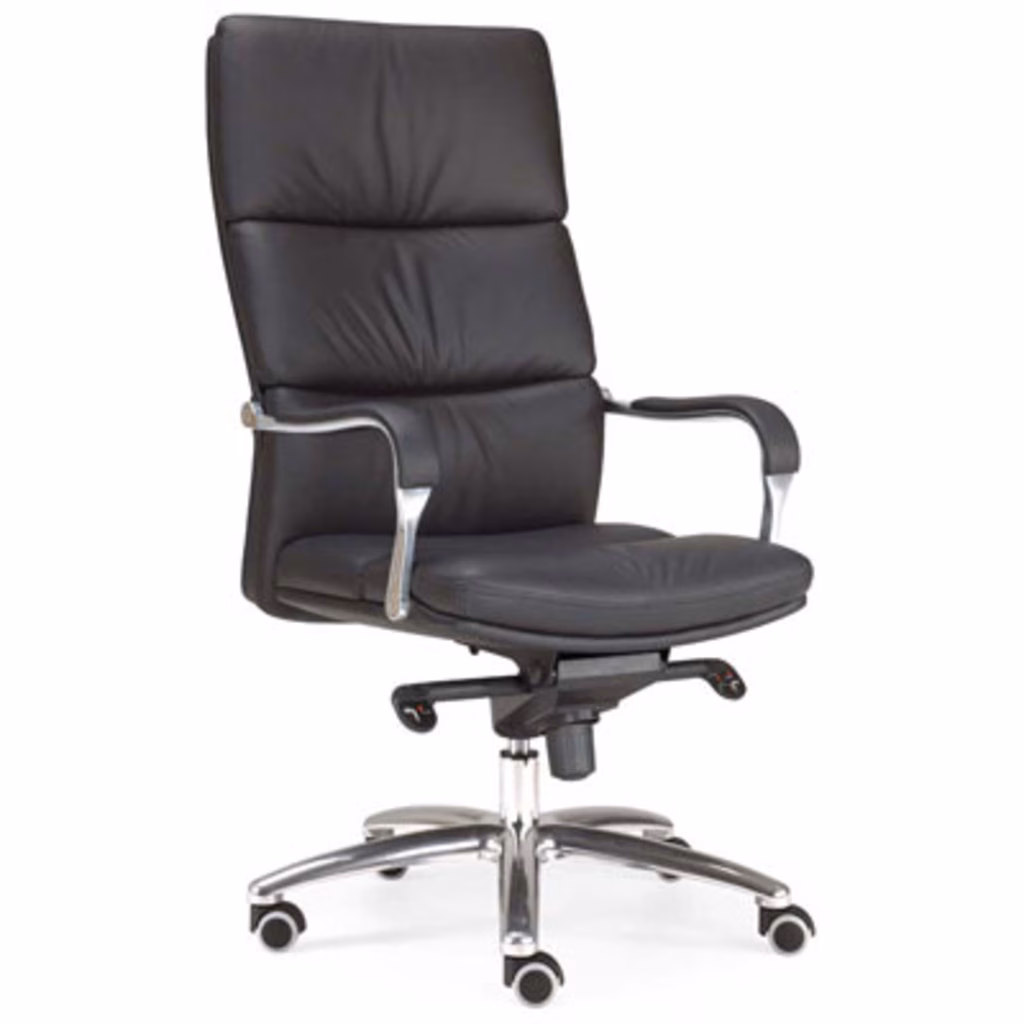 Sistema direzionale che garantisce il massimo in termini di ergonomia e comodità. I cuscini imbottiti si integrano con la struttura per un design destinato a durare nel tempo - poltrona direzionale classica caratterizzata dal particolare bracciolo in alluminio con pad imbottito e rivestito - Base: 5 razze in alluminio su ruote - Rivestimento: Pelle - Schienale: alto con movimento regolato da meccanismo oscillante a fulcro avanzato con possibilità di blocco in piu' posizioni e regolazione della resistenza dell'oscillazione in funzione del peso dell'utilizzatore - Garanzia 3 anni