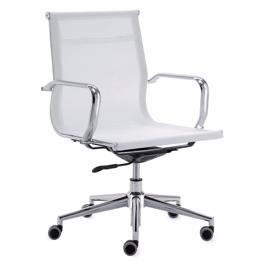 La linea sinuosa della struttura portante cromata caratterizza la poltrona Zeus nella versione a rete - Poltrona monoscocca con struttura braccioli e base in acciaio cromato - Supporto in rete portante - Base a 5 razze Ø 64cm su ruote pivotanti - Meccanismo oscillante monoblocco, opzionale la versione multiblocco a 4 posizioni, completo di manopola regola tensione in funzione del peso dell'utilizzatore - Schienale: medio - Garanzia 2 anni