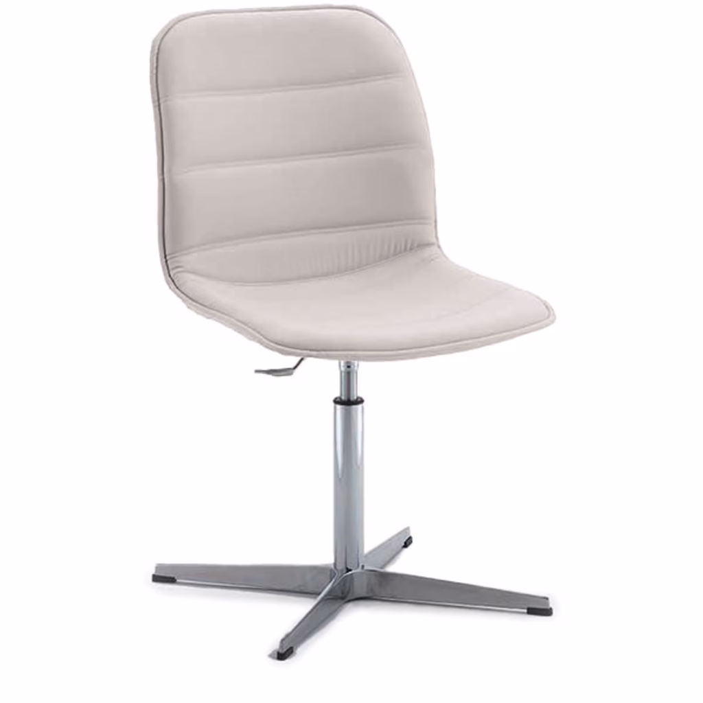 Caratterizzata da un rivestimento morbido con cuciture orizzontali - Gea assicura comfortdi utilizzo ed una eccezionale funzionalità - Poltroncina monoscocca con interno in multistrato di faggio FSC® con imbottitura densità 40 rivestita in ecopelle - senza braccioli - Base: 4 razze su piedini