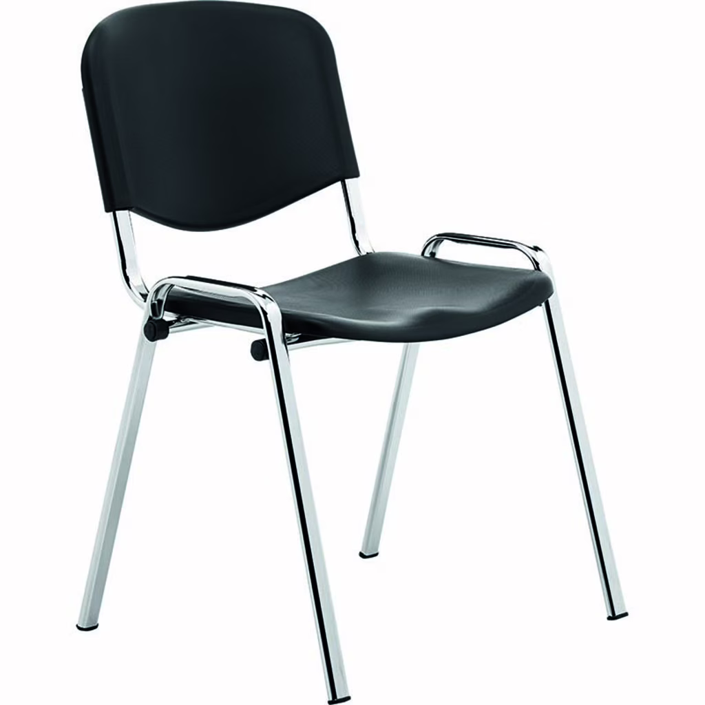 Seduta fissa impilabile con sedile e schienale in polipropilene colorato ideale come sedia attesa o conferenza. Struttura in tubolare d'acciaio nella versione cromata. Completabile con braccioli e scrittoio. Piedini in gomma antiscivolo. Colore nero