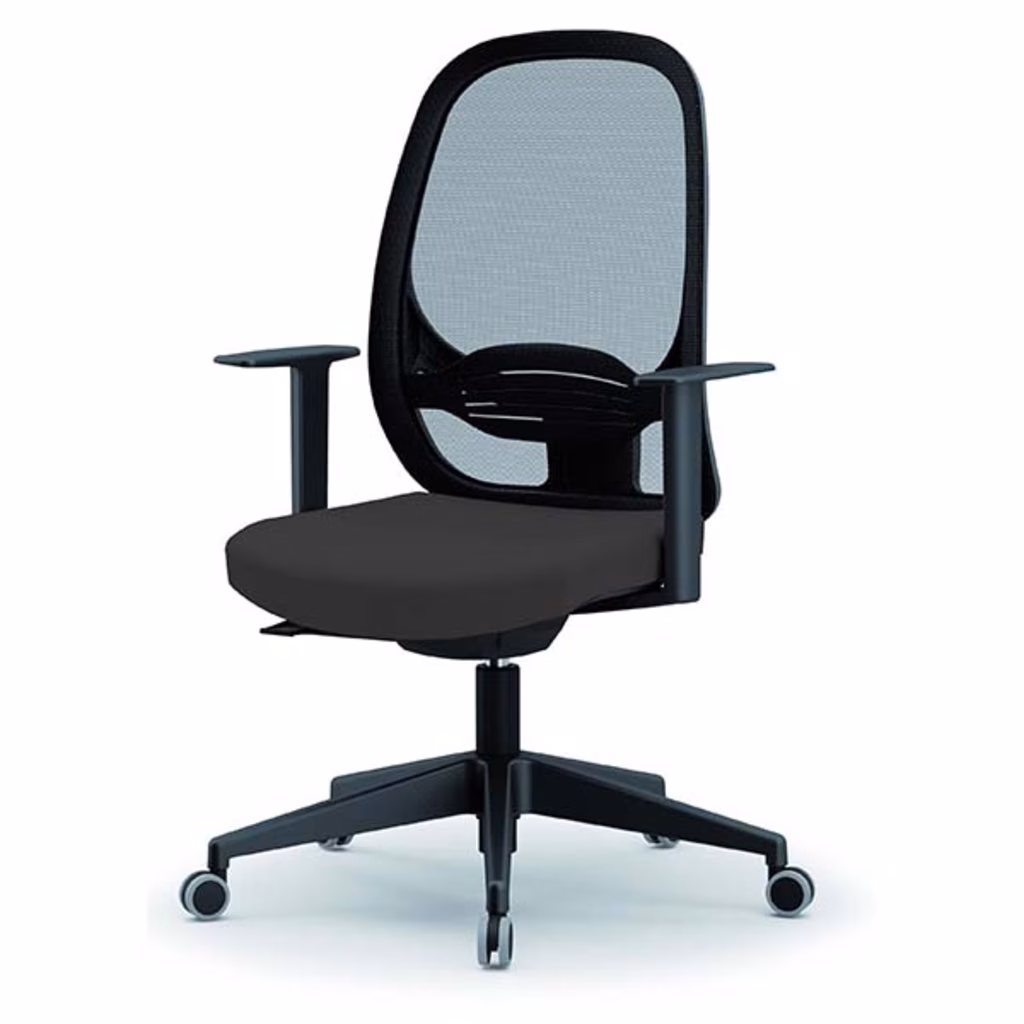 • Schienale in rete di colore nero (su richiesta sono disponibili altri 5 colori) con supporto lombare regolabile in altezza