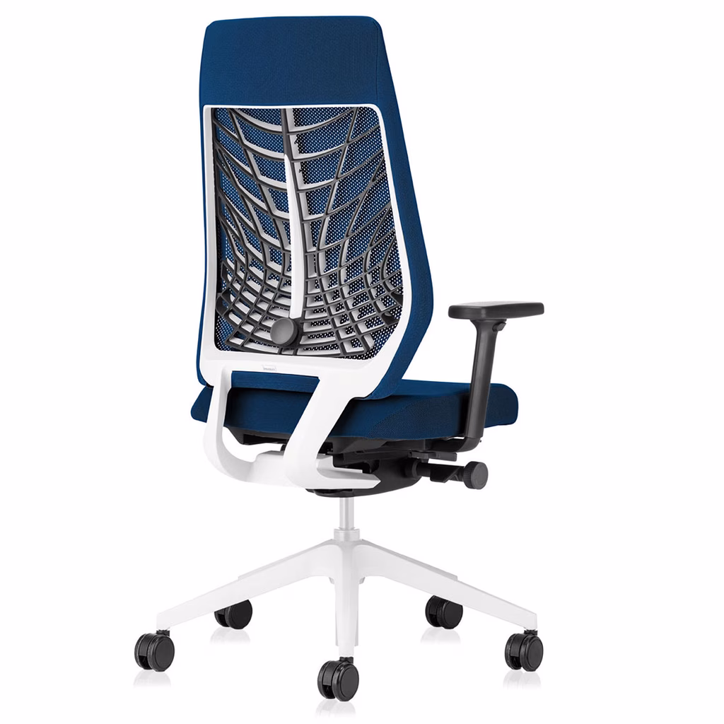 Immagine di Sedia operativa FLEXA struttura bianca sedile tessuto blu