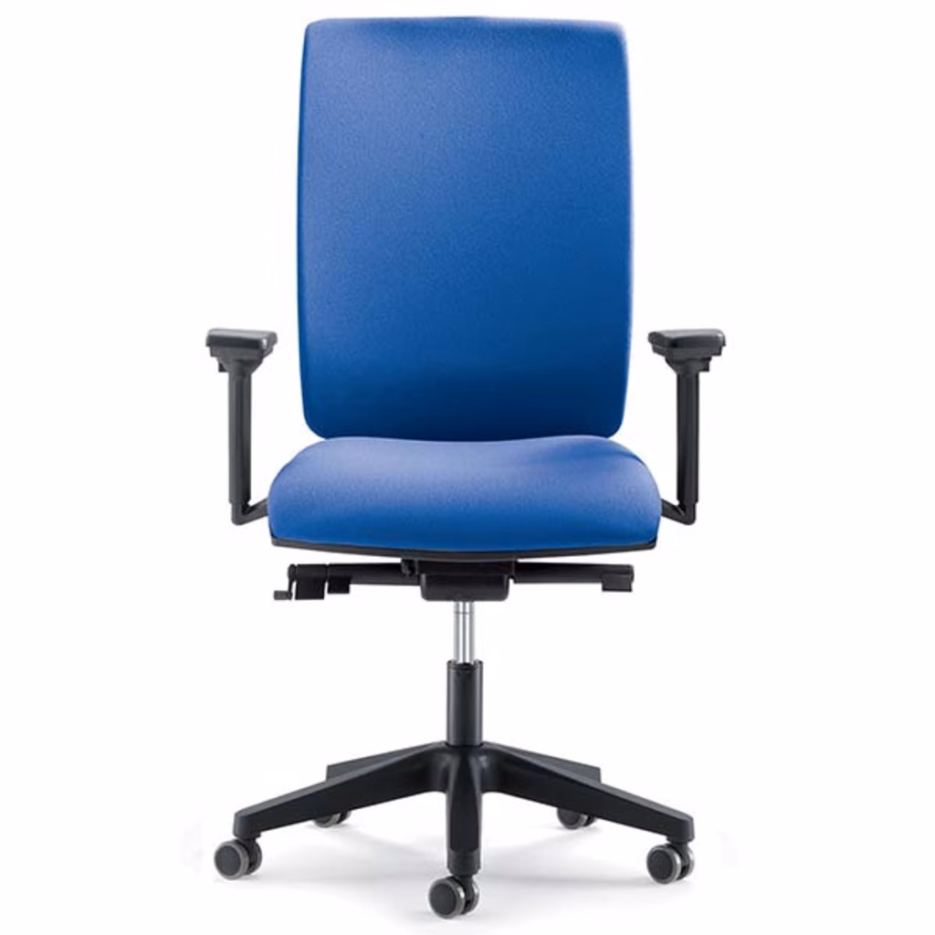 Versione con schienale imbottito - Meccanismo syncron autopesante multiblocco - Portata 150 kg - Poggiatesta opzionale - Regolazione in profondità del sedile - Supporto lombare regolabile in altezza - Schienale regolabile in altezza tramite up&down a cremagliera - Base a 5 razze in nylon nera - Ruote gommate autofrenanti - Braccioli regolabili 3D (altezza, profondità ed orientamento) - Proposta nella versione con rivestimento in tessuto ignifugo Mirage - Certificata UNI EN 1335 in classe "B" - Omologata in classe 1IM - Certificata CAM - Garanzia 5 Anni