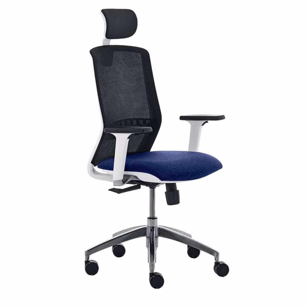 Sedia operativa TEKNA WHITE con poggiatesta blu