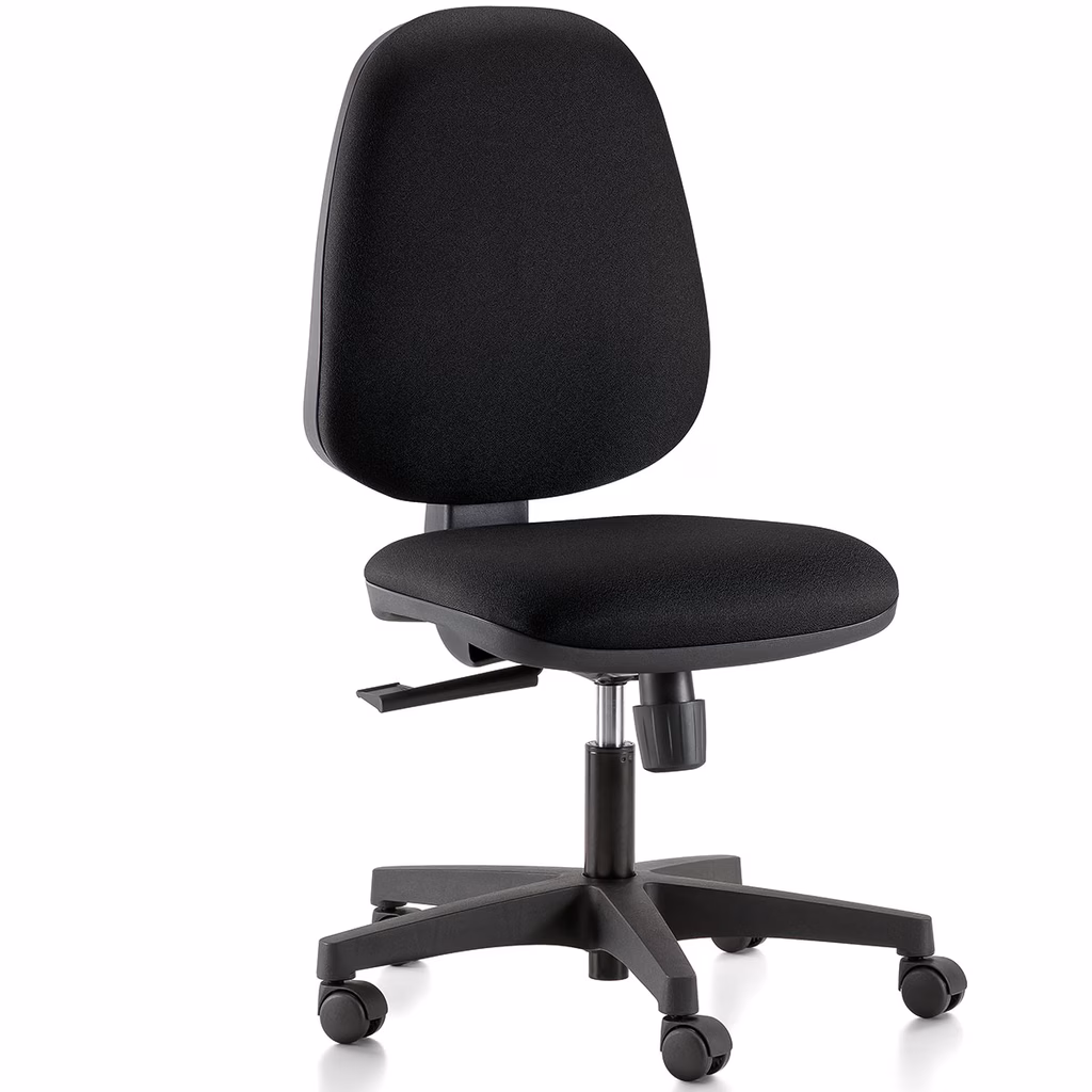 Movimento regolato da meccanismo synchron bloccabile in più posizioni con regolazione dell'intensità dell'oscillazione in funzione del peso dell'utilizzatore - Dispositivo antishock - Imbottitura sedile in poliuretano espanso ignifugo ad alta densità rivestito in tessuto ignifugo Teddy (test usura 85.000 cicli Martindale) - Base a 5 razze in nylon nera - Ruote pivotanti - Accessori opzionali: braccioli regolabili in altezza - Certificata UNI EN 1335 classe"B" - Omologata in Classe 1IM