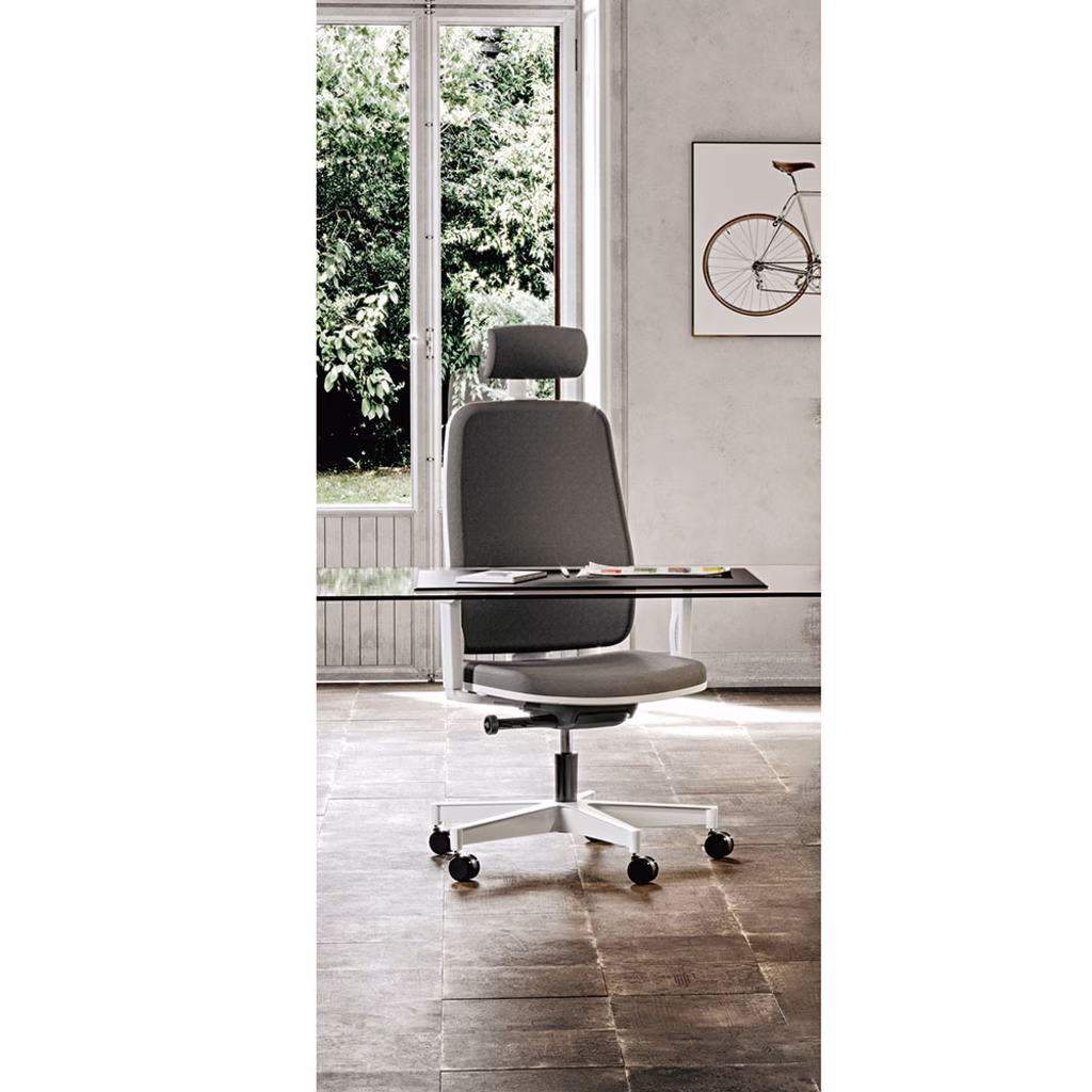 Sedia operativa WIN con poggiatesta struttura bianca schienale imbottito grigio
