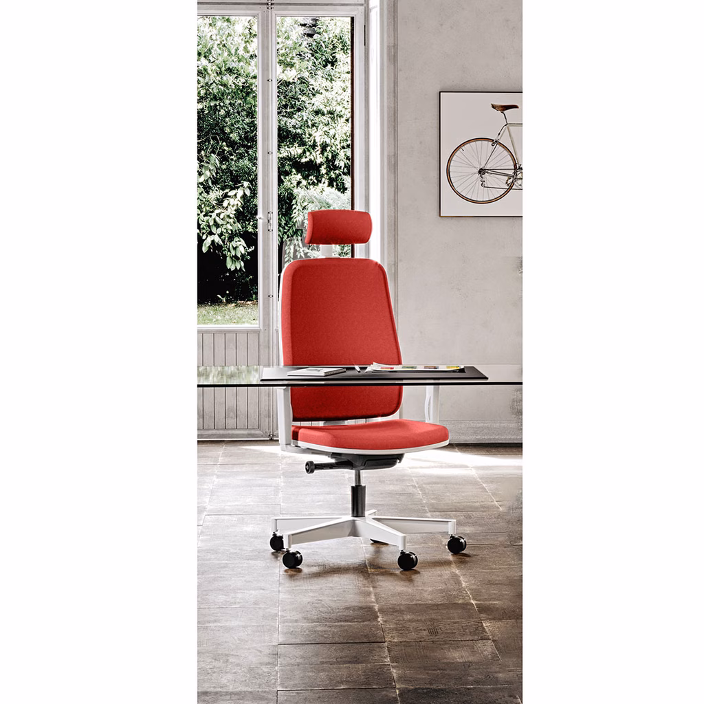 Sedia operativa WIN con poggiatesta struttura bianca schienale imbottito rosso