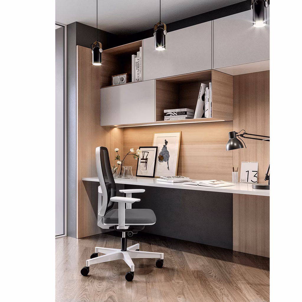 Sedia operativa WIN senza poggiatesta struttura bianca schienale rete nera grigio