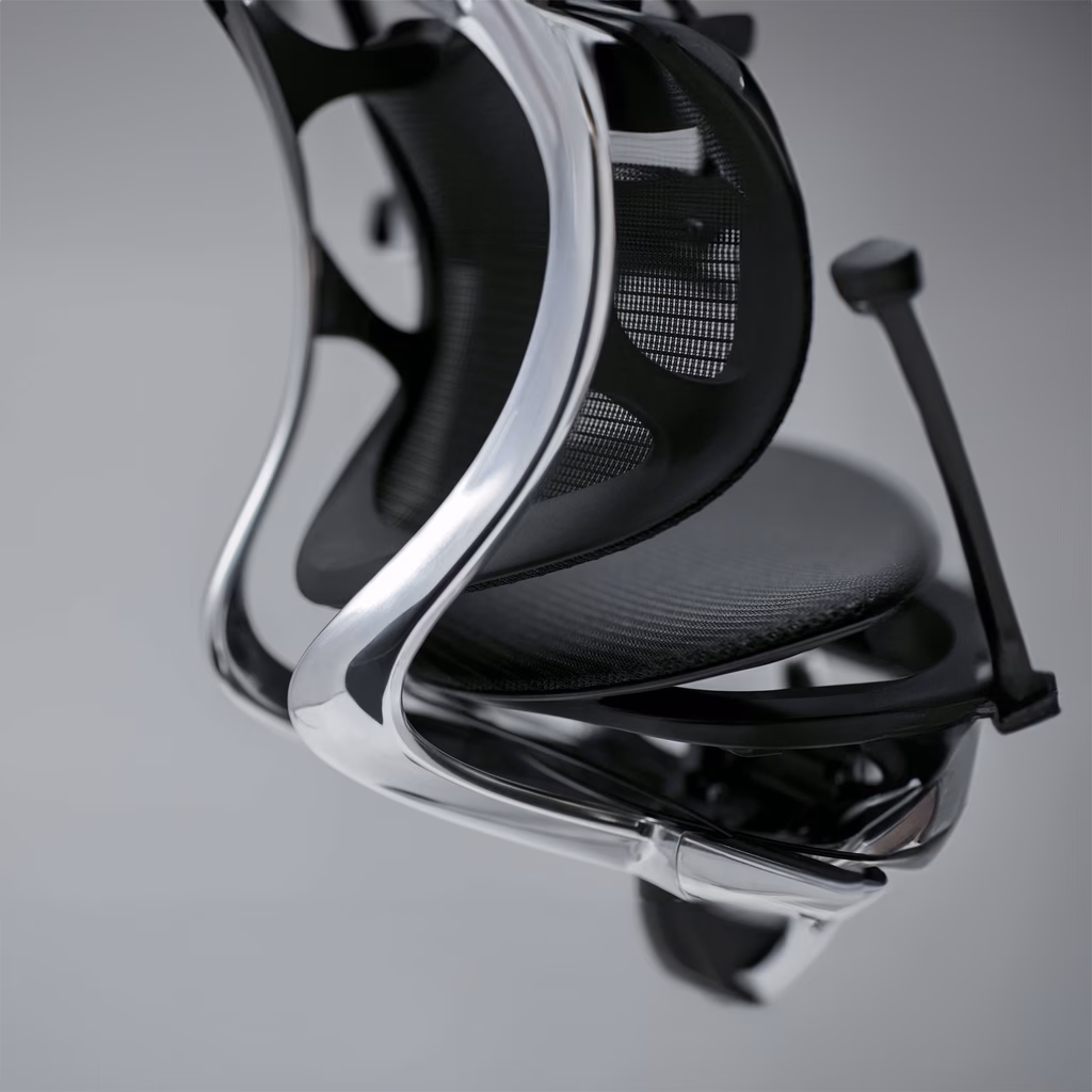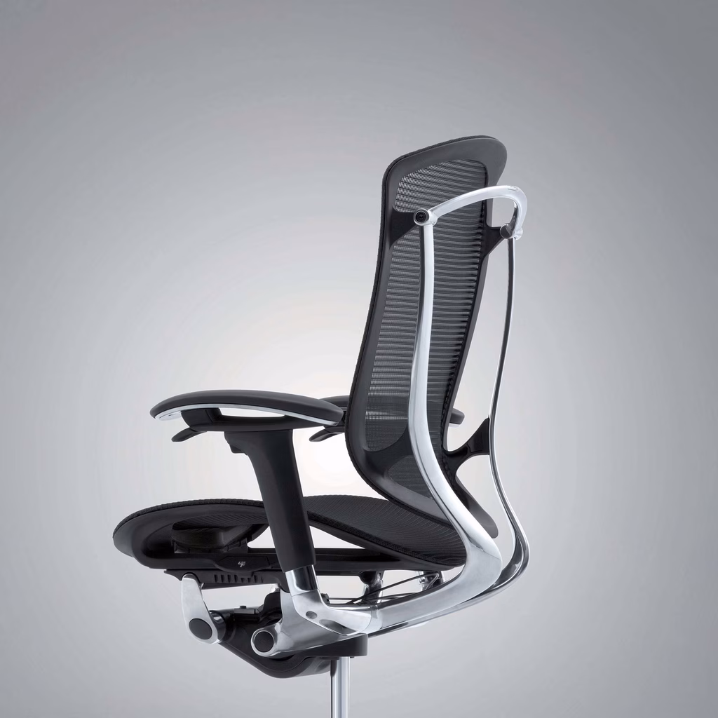 Sedia di alta gamma elegante ed ergonomica firmata Giugiaro Design, facilmente regolabile con luso intuitivo di leve nei braccioli. Base e struttura finitura lucida. Sedile e schienale in rete elastica. Base a 5 razze in alluminio su ruote morbide. Elevazione a gas regolabile. Sedile provvisto di traslatore per consentire la regolazione in profondità del sedile. Schienale reclinabile con blocco in piú posizioni e possibilitá di regolazione della tensione di oscillazione in funzione del peso dell'utilizzatore. Fornita con braccioli regolabili 4D completi di comandi regolazione altezza e blocco/sblocco oscillazione. Optional gestiti in pronta consegna da ns magazzino: Supporto lombare regolabile in altezza e profondità. Ruote morbide. Poggiatesta largo in rete nera. EXTRA OPTIONAL con consegna in 15gg: Poggiatesta regolabile e Appendi giacca. PRODOTTA PER IL 52% CON MATERIALE RICICLATO, RICICLABILE AL 95% CERTIFICAZIONI: EN 1335-1/2/3, GREENGUARD. GARANZIA 10 ANNI