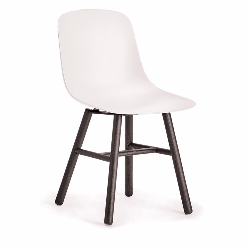 Pure Loop mono è un monoscocca in polipropilene con fibra di vetro estremamente versatile. Versione RETRO con struttura in massello di faggio laccata colore nero. Colore monoscocca bianco